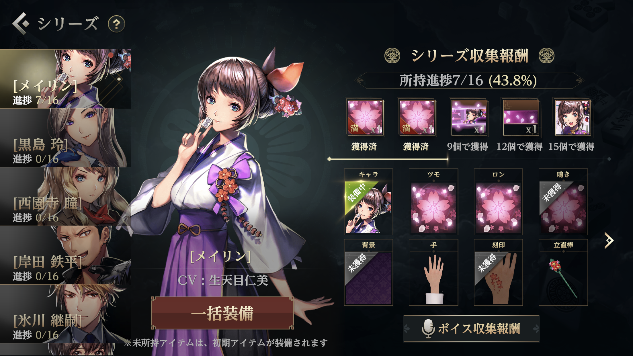 キャラクターを装備することで、対局終了時や龍箱利用時などにそのキャラクターのシリーズコインを獲得できます。