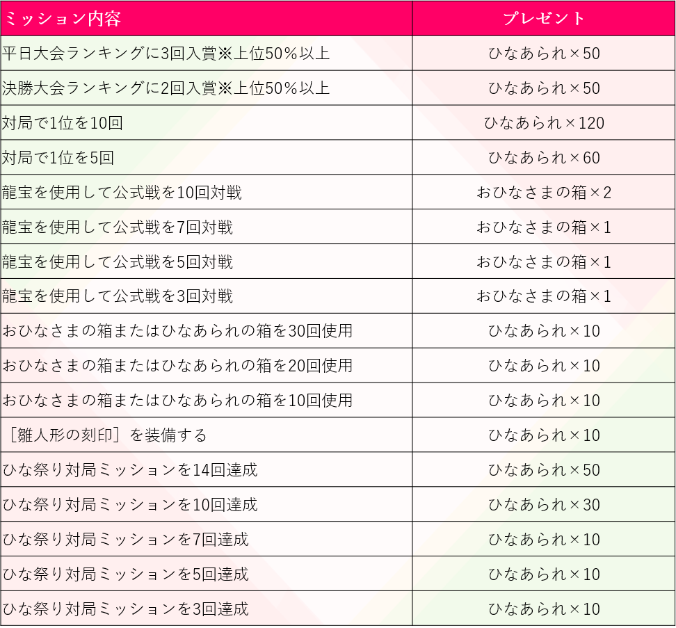 ※ひな祭りイベント対局ミッションの完了記録の参照は、毎日1回までとなります。