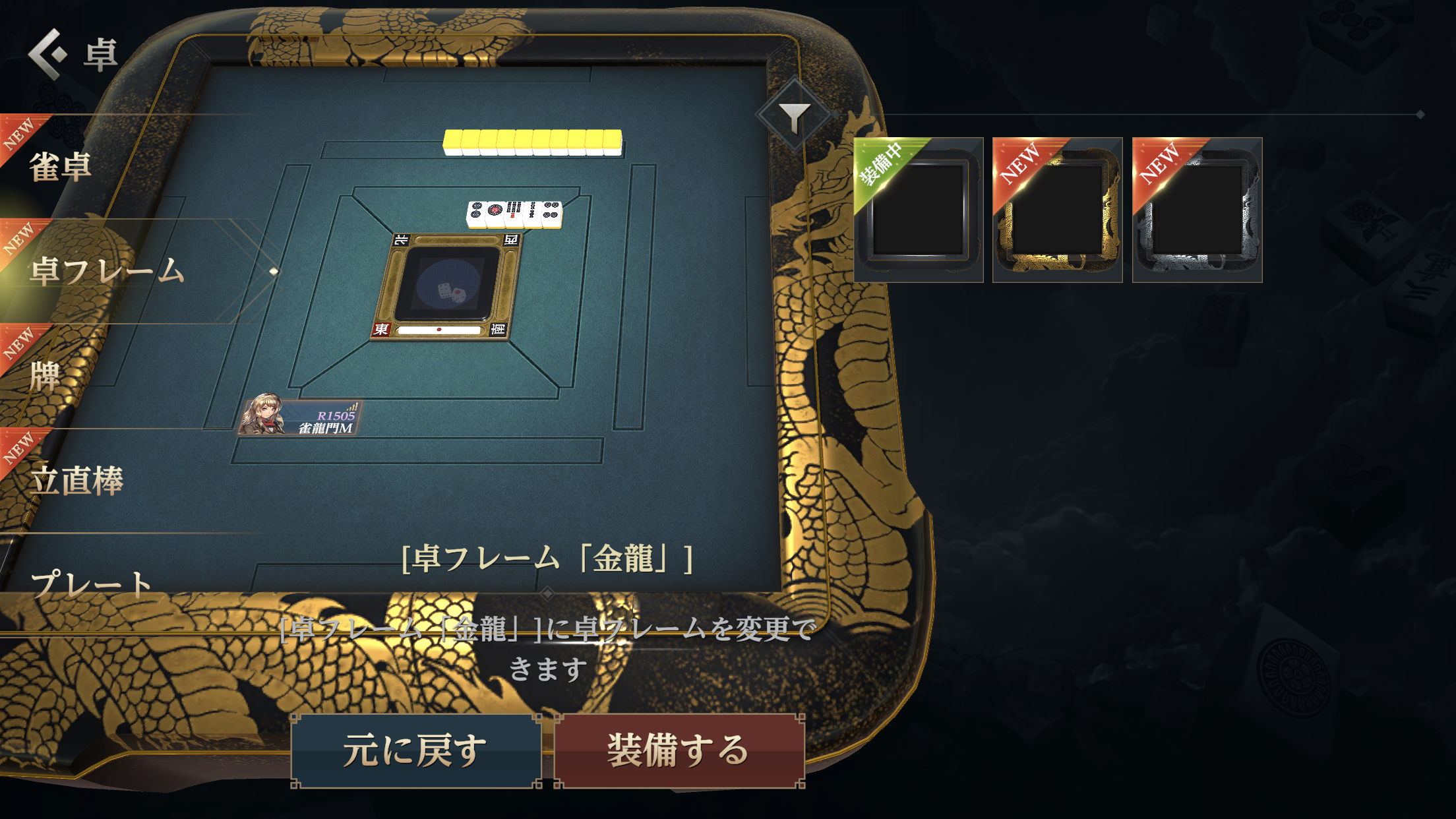こちらのショップでは、ゴールドを消費して麻雀卓や、卓フレーム、BGMを購入することができます。