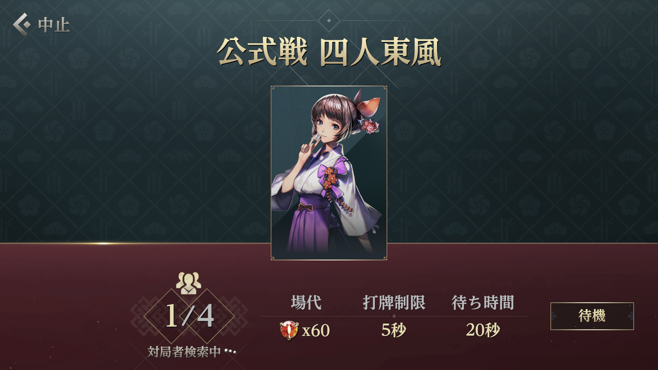 四人麻雀・オーラスから対局が始まり、和了の翻数に応じてゴールド獲得することができます。