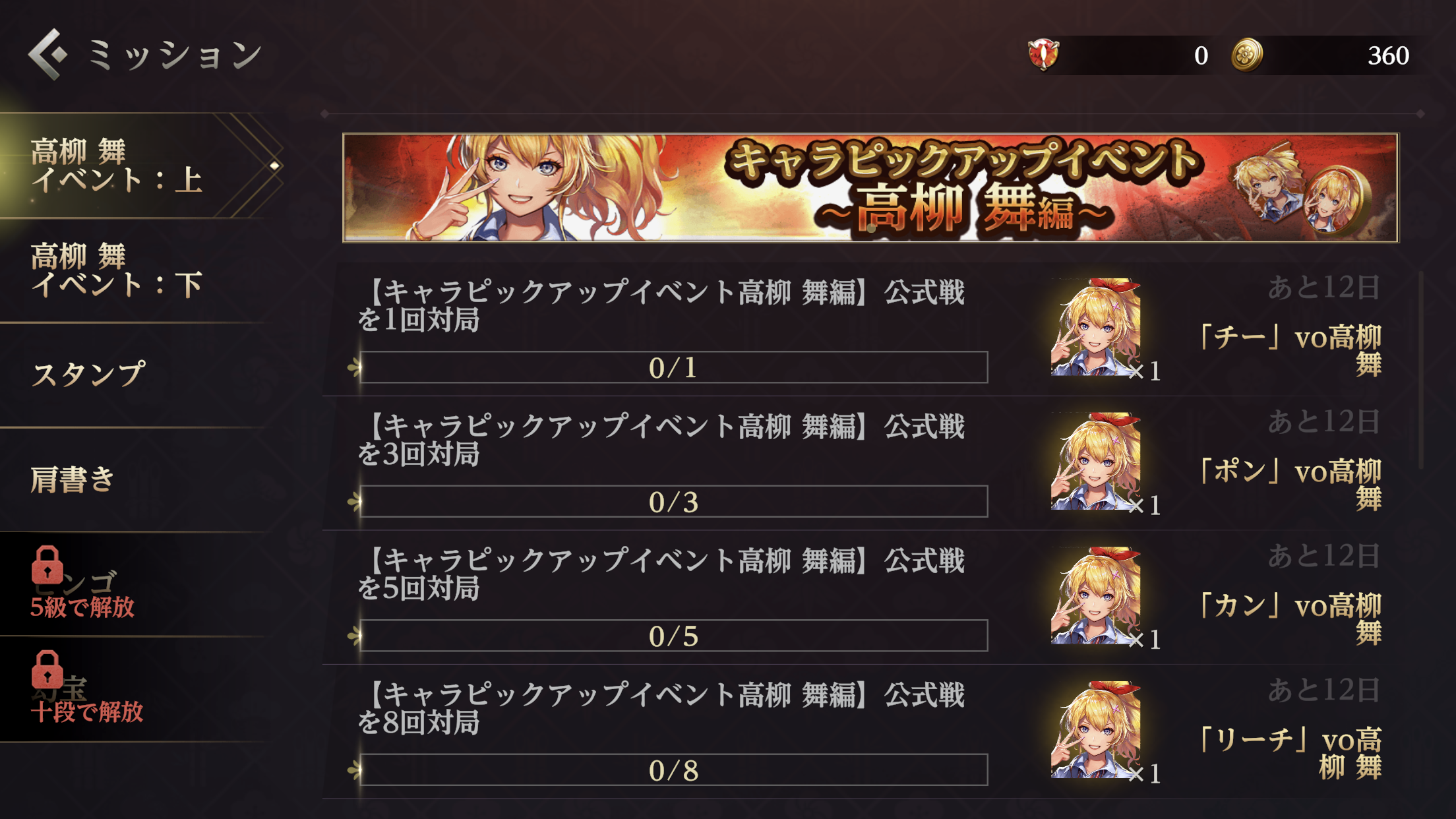 イベント専用のミッションをクリアすると様々な報酬が獲得できます