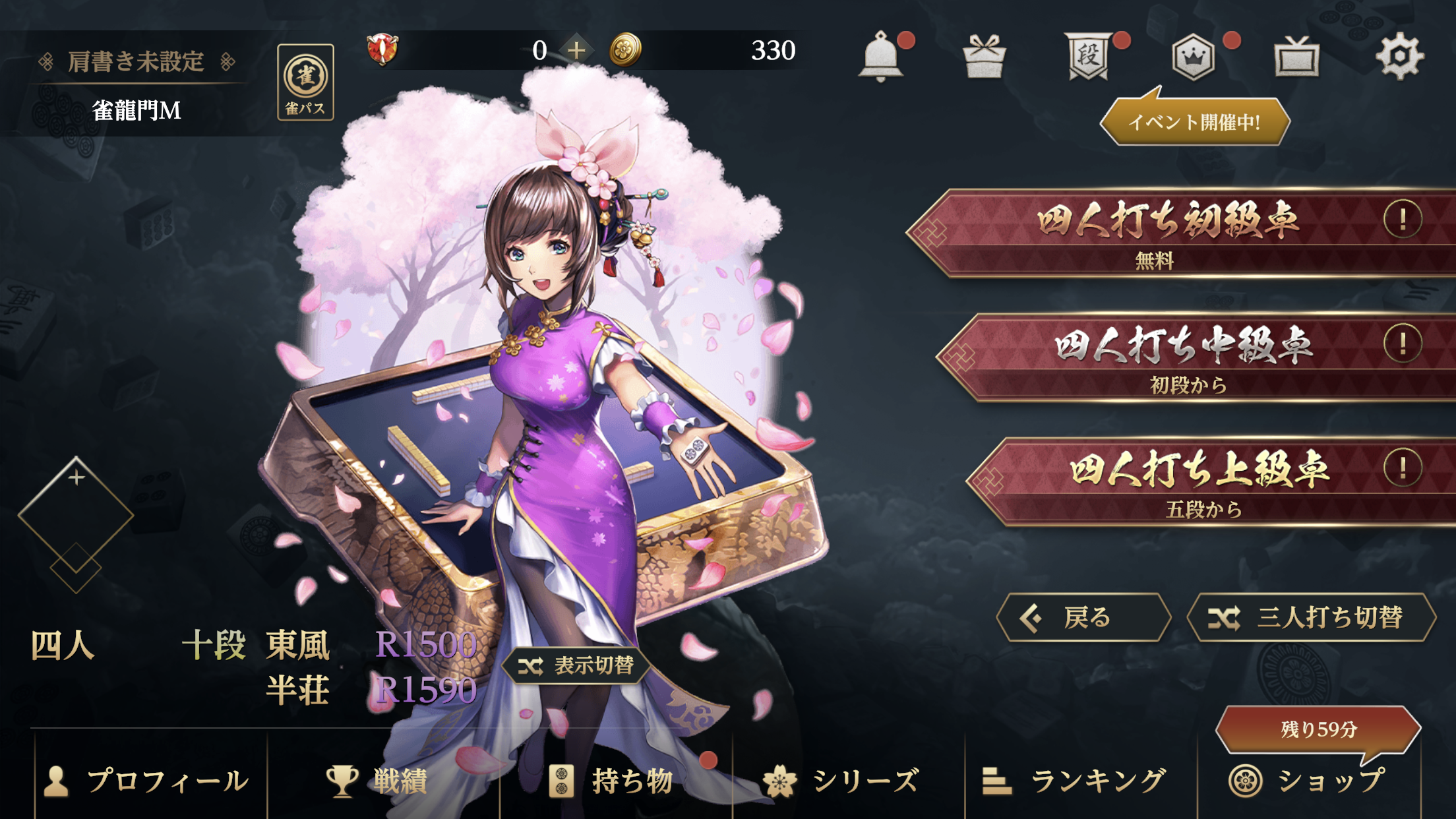 ※自分の階級に関係なく、卓を選んでプレイ可能