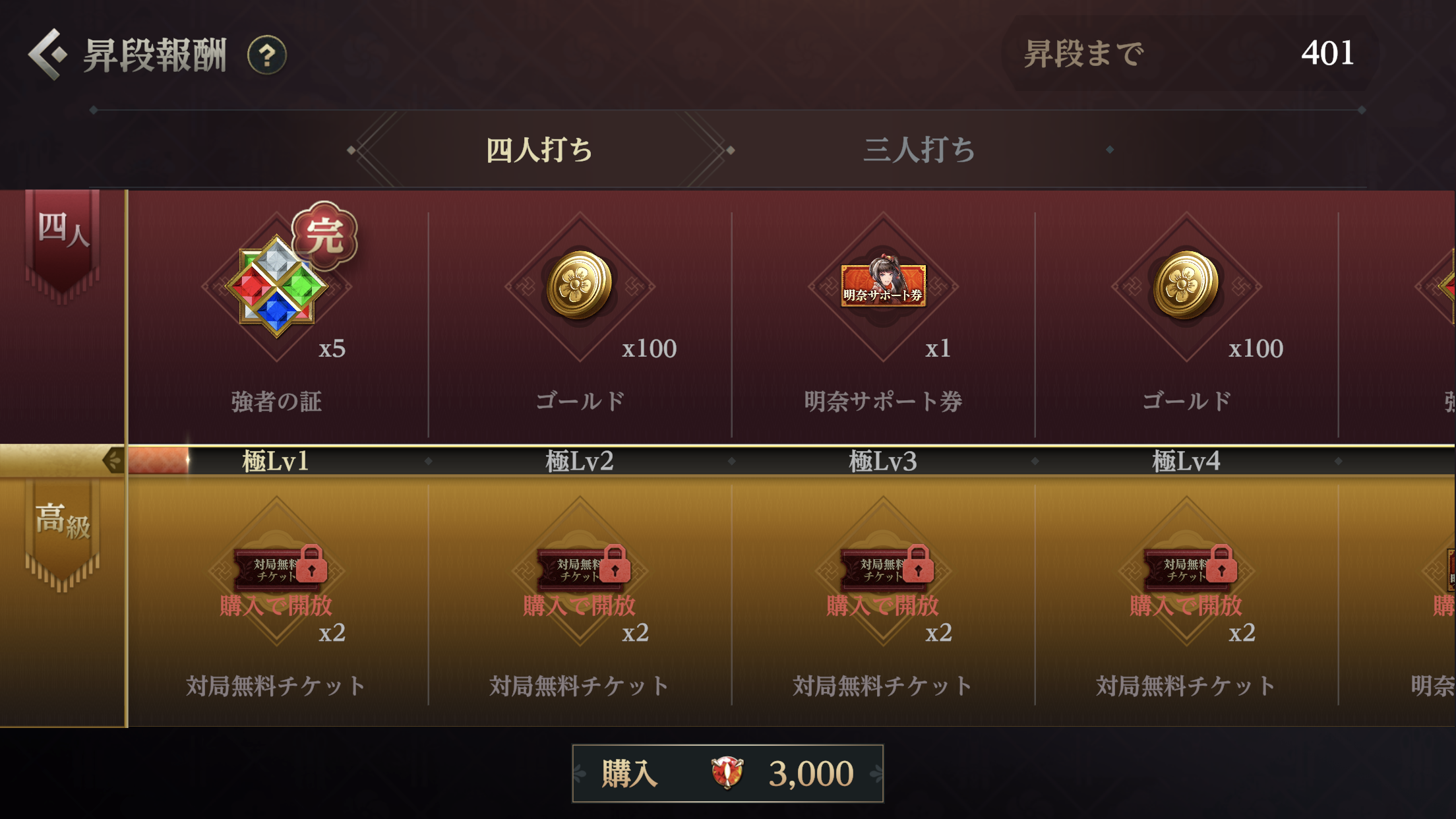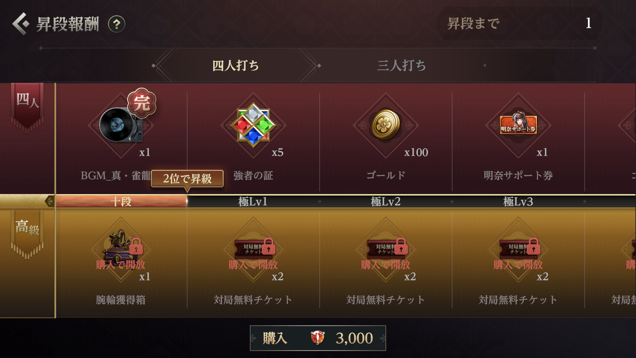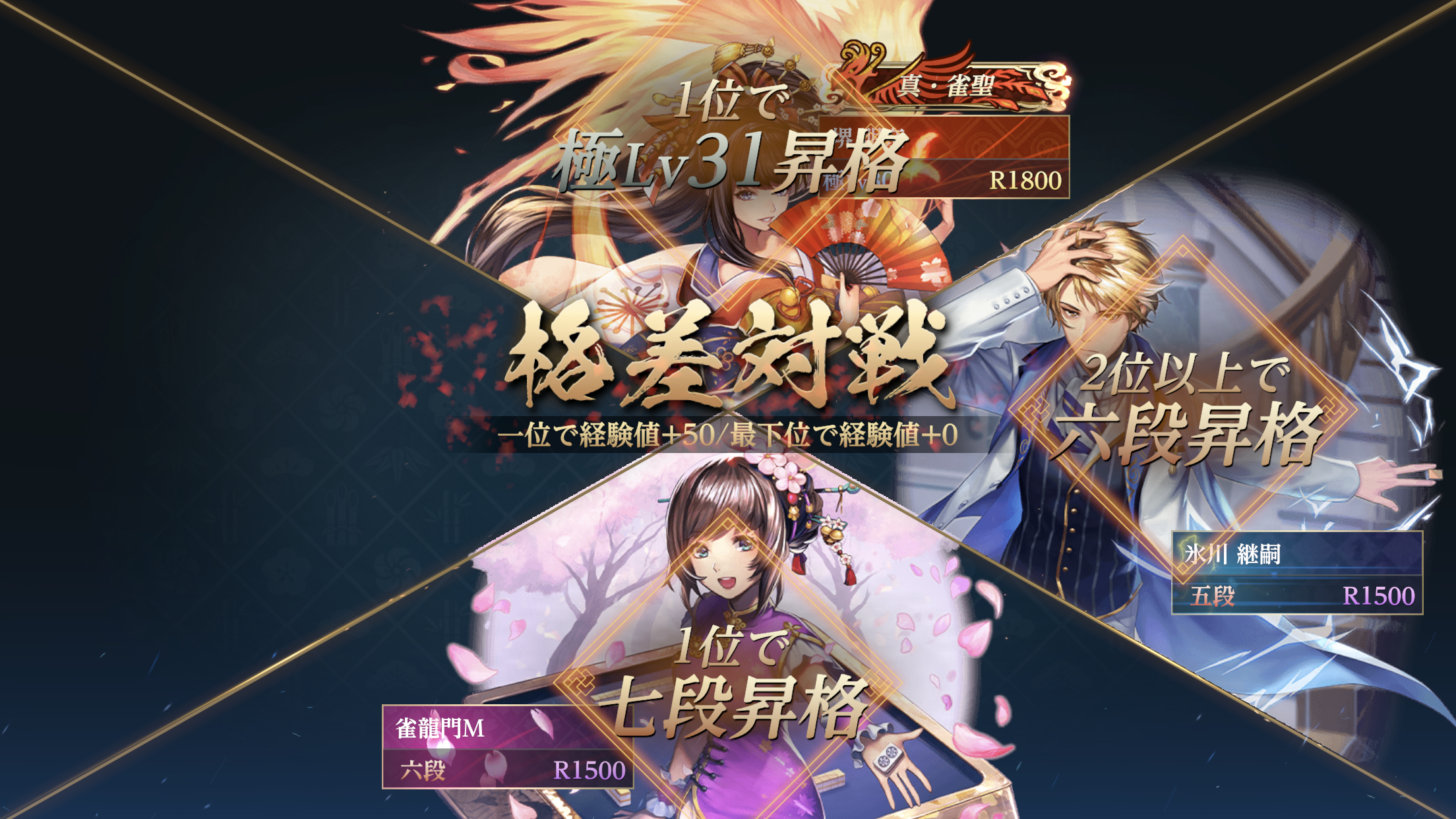 公式戦の「四人打ち」「三人打ち」に新しい段位【極Lv】が追加されました。