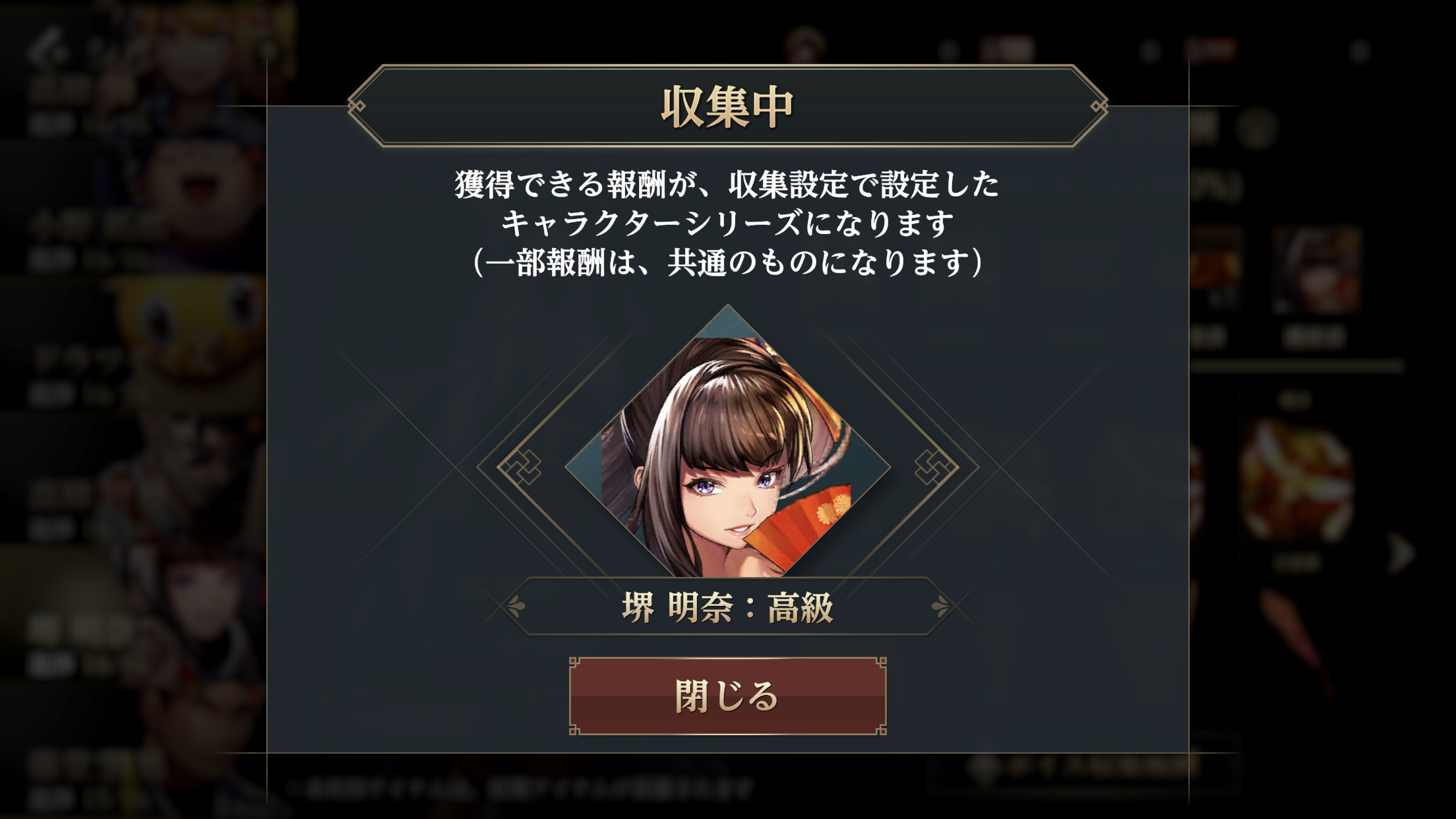 収集設定は、キャラクター画面やシリーズ画面から設定が可能です。