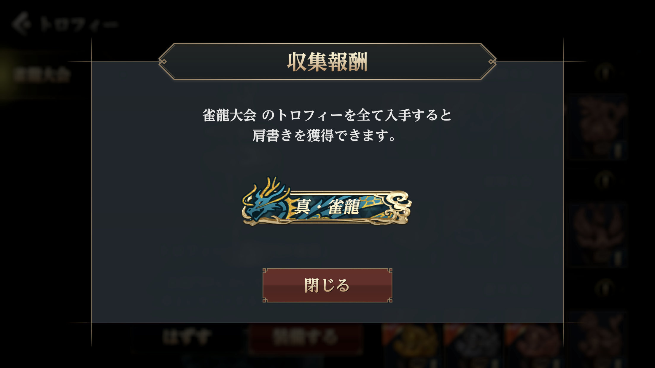 また、最上位のトロフィーを完成させると、特別な幻獣シリーズの肩書が獲得できます。