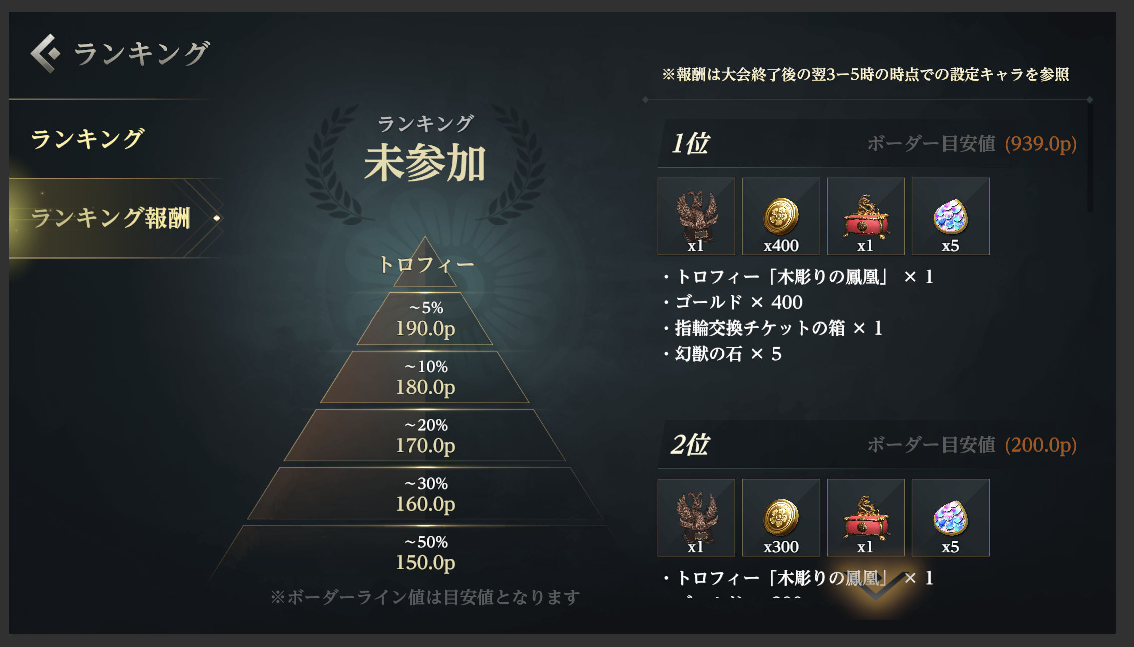 ランキングの順位が高いほど多く獲得できるため上位を目指して対局してみてください。