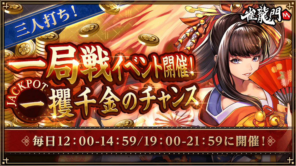 20thアニバーサリーコインは、イベントログインボーナス、公式戦(中級卓以上)の対局報酬から獲得いただけます!