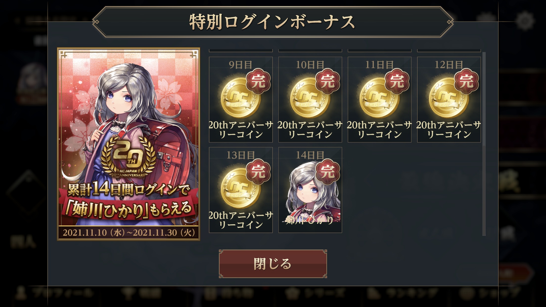 期間中、最大14日間のログインでキャラクター「姉川 ひかり」を獲得いただけます!