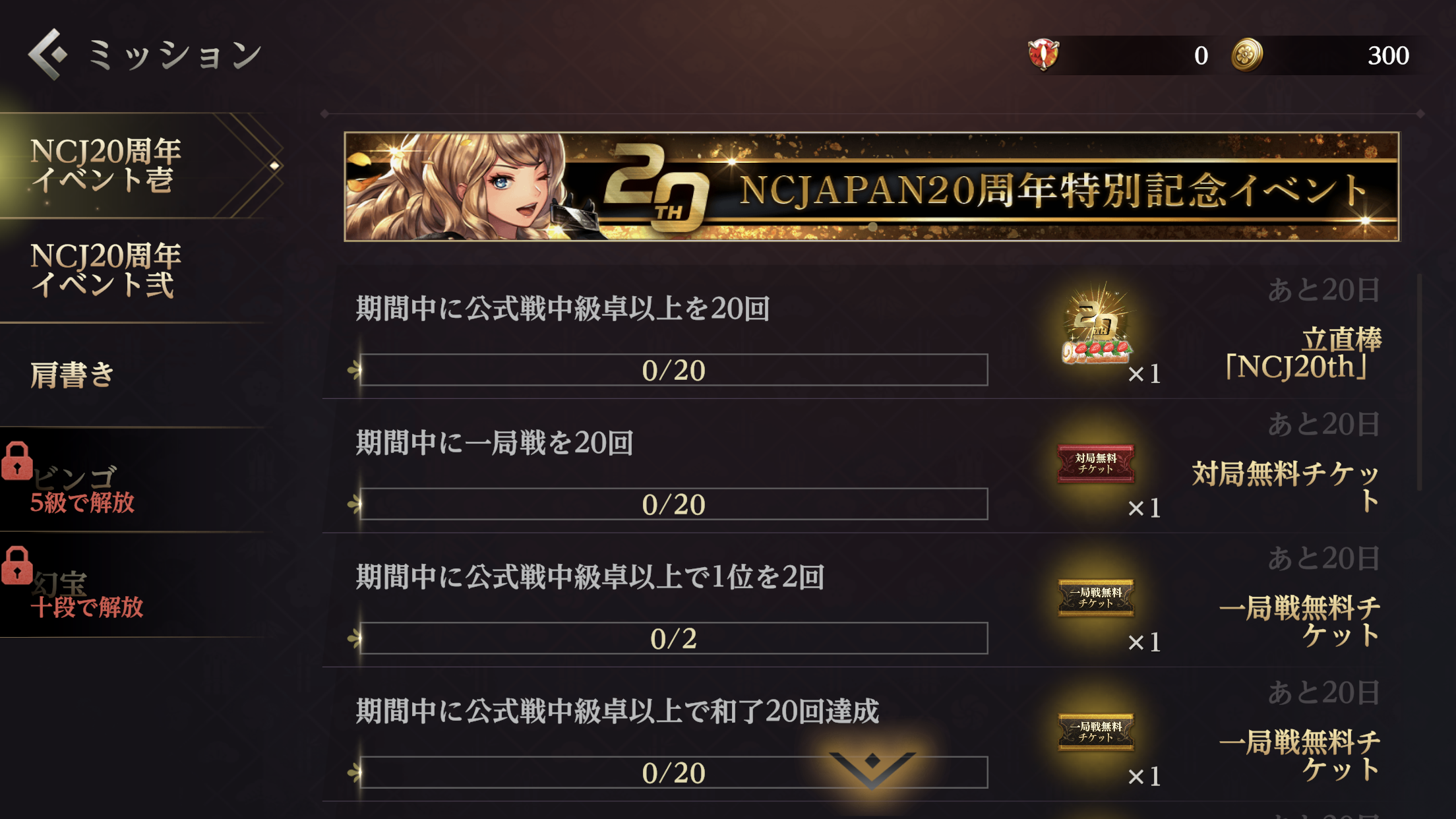 期間中、NCJAPAN20周年イベントミッションが開催されます!