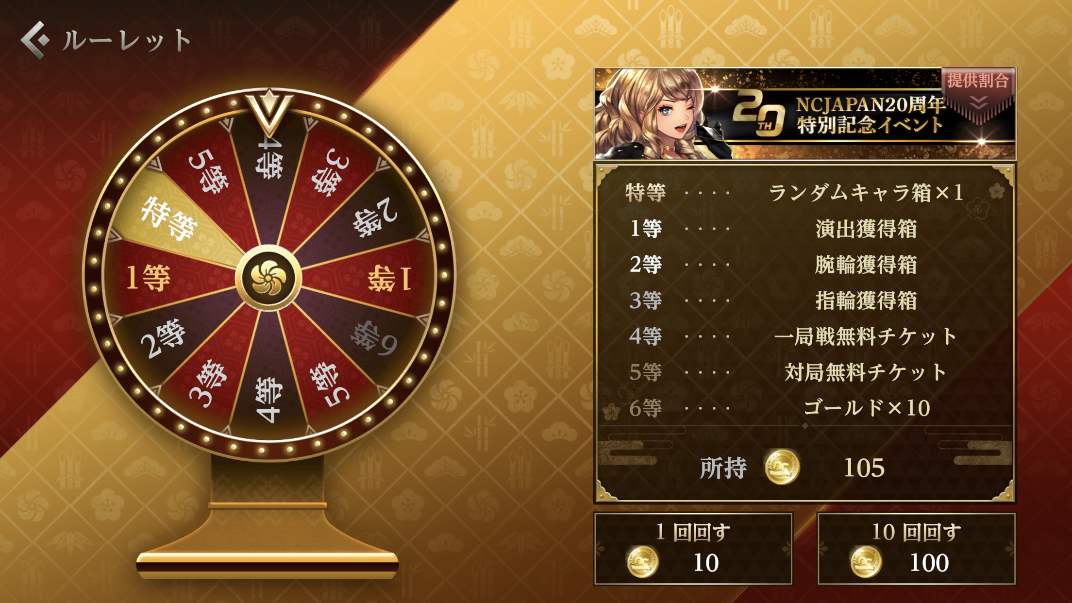 NCJAPAN20周年イベント専用アイテム「20thアニバーサリーコイン」を使用して回せる特別なルーレットが登場!