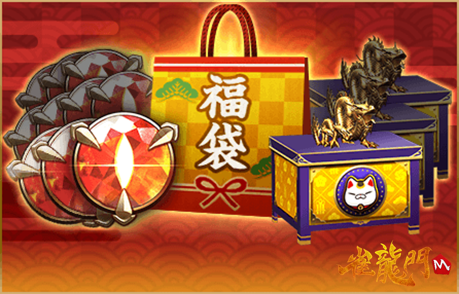 龍宝をお得に購入できる特別なパック商品や、雀龍門M年末年始イベント限定アイテムが出現する最高級箱などをご用意!