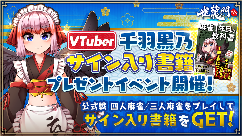 2022年6月20日(月)午前5:00~2022年7月4日(月)午前4:59まで、VTuber千羽黒乃さん サイン入り著書「麻雀1年目の教科書」プレゼントイベント開催します!