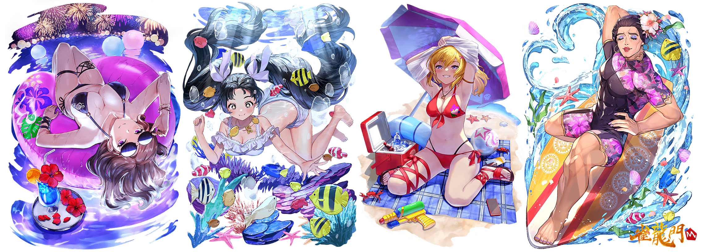 水着の装いをした雀龍門フェスティバル限定キャラクター「黒島 玲:水着ver」、「黒川 冥沙:水着ver」、「高柳 舞:水着ver」、「姉川 圭吾:水着ver」が登場!
