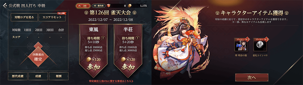 公式戦中級卓以上で報酬等が倍になる場代ブースト機能を追加しました!