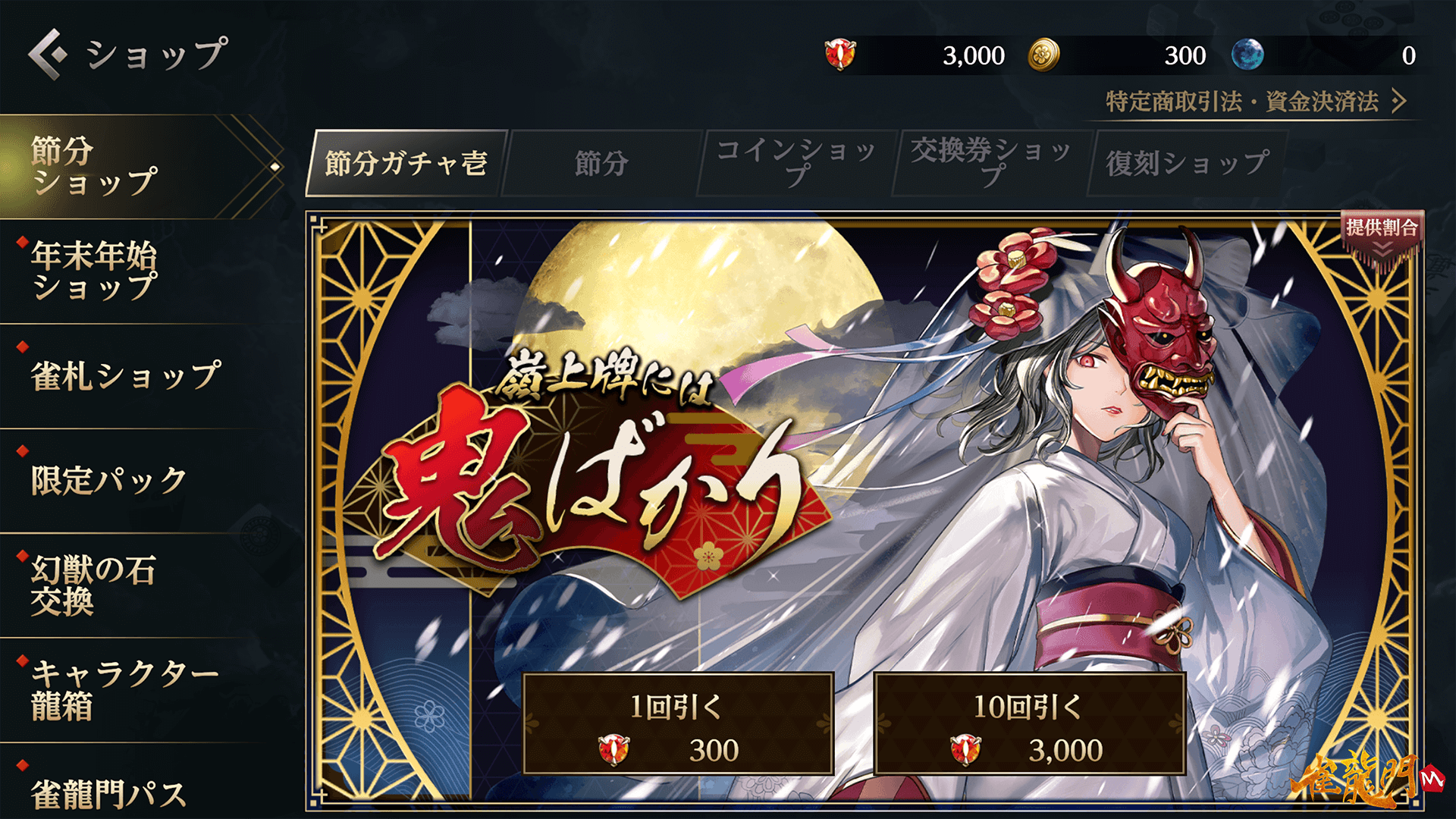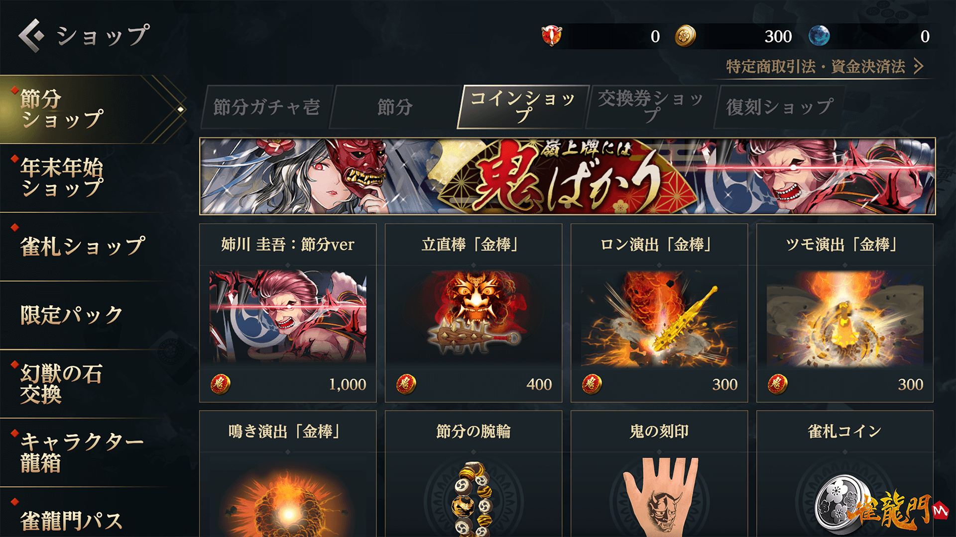 龍宝をお得に購入できる特別なパック商品や、「嶺上牌には鬼ばかり」イベント限定アイテムが出現する節分ガチャが登場!