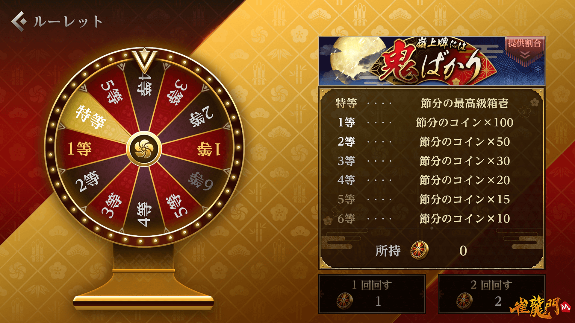 「節分のコイン」は公式戦(中級卓以上)の対局報酬、イベントミッション報酬、ルーレット、節分ショップの商品などから入手が可能です!