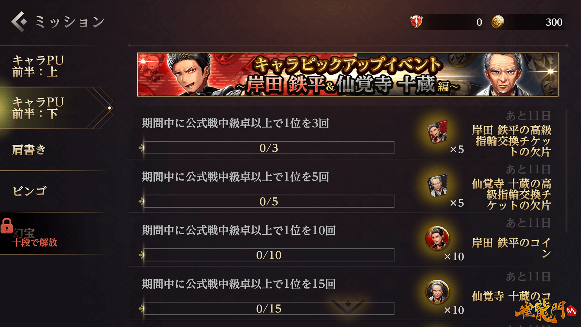 ※公式戦初級卓、友人戦、AI戦、一局戦、最強決定戦、雀札戦での戦績は、本イベントにはカウントされません。