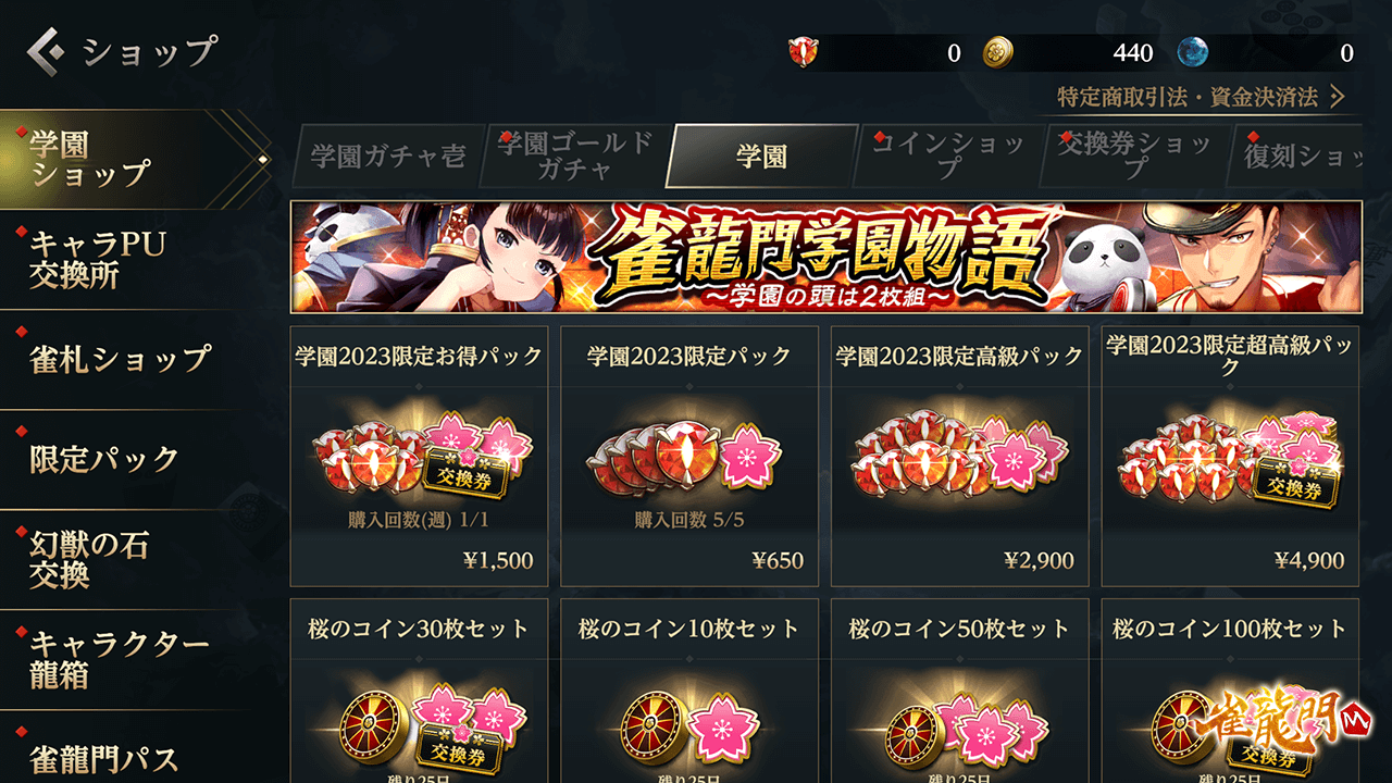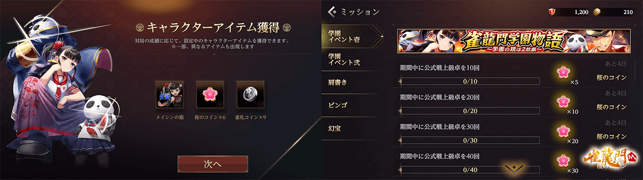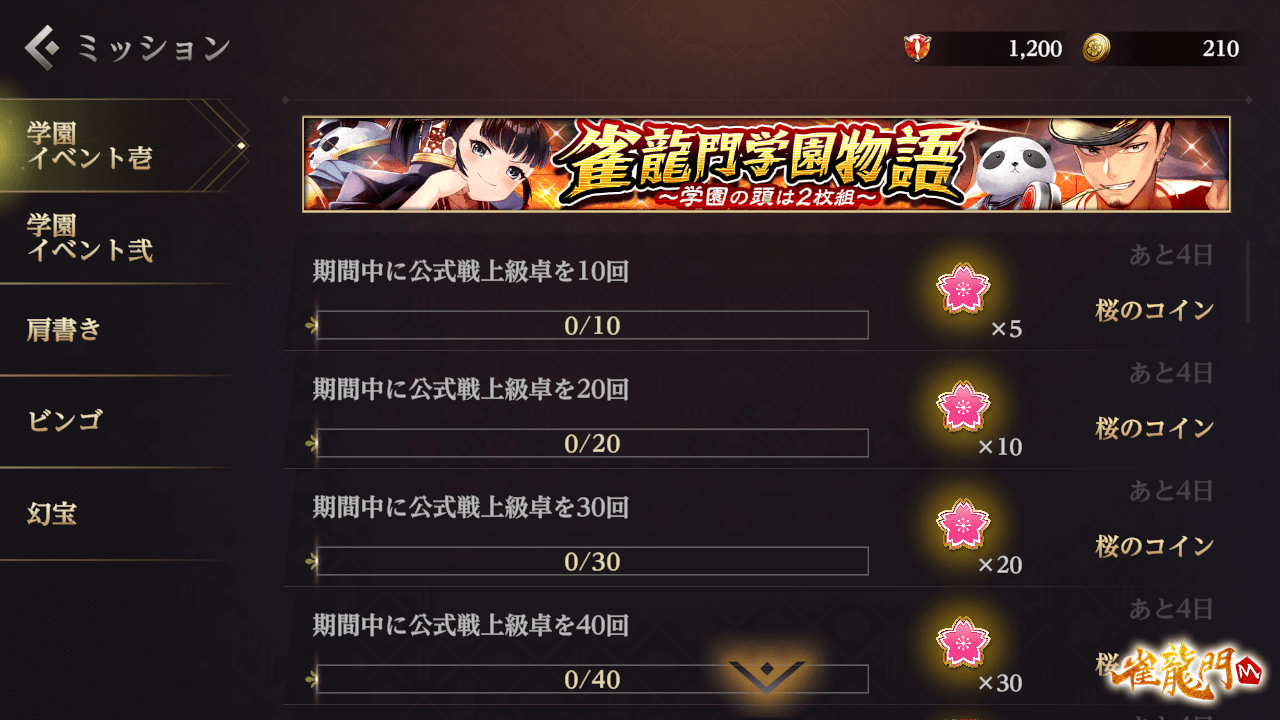 「桜のコイン」は公式戦(上級卓)の対局報酬、イベントミッション報酬、ルーレット、学園ショップの商品などから入手が可能です!