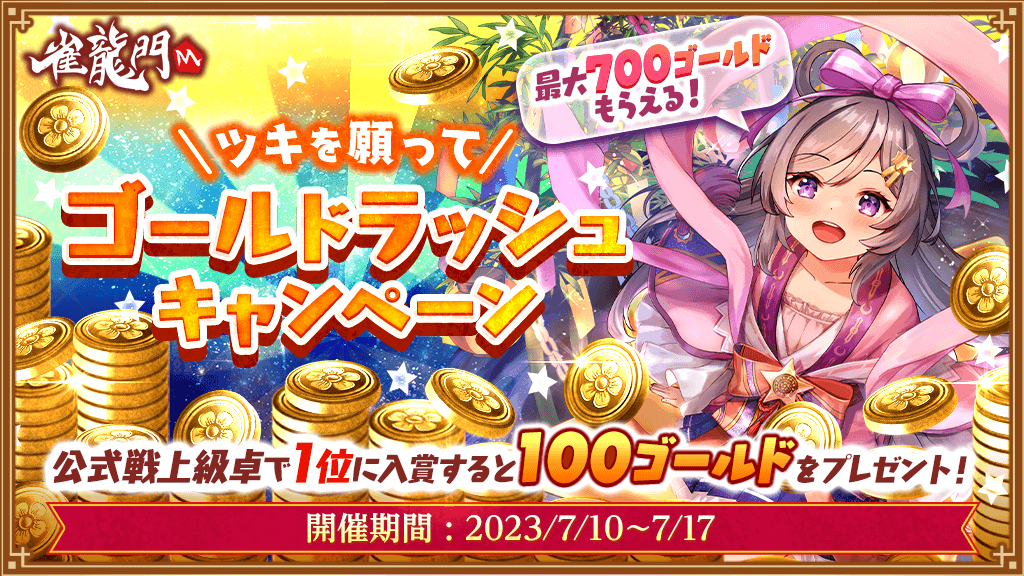 今年の雀龍門Mでは七夕の願掛けにちなんで、「ツキを願って!ゴールドラッシュキャンペーン」を7月10日より開催いたします。