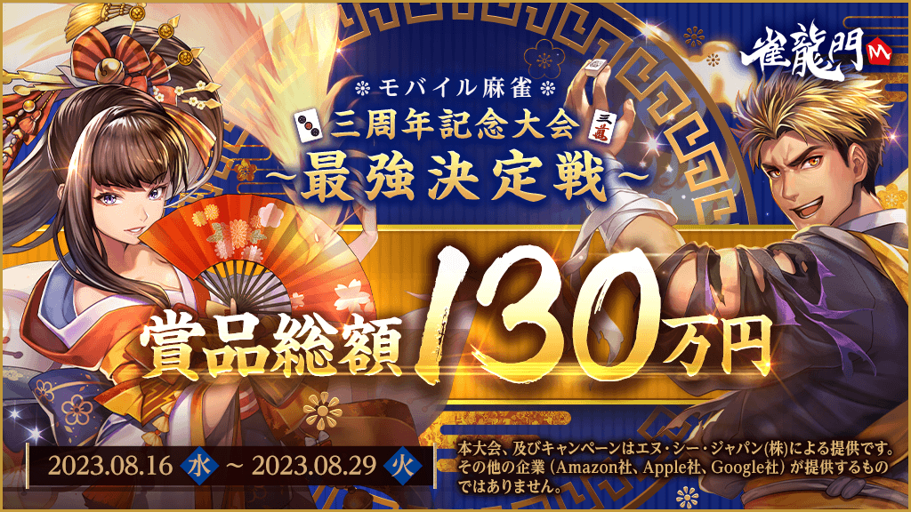 3周年を記念した「賞品総額130万円」のオンライン麻雀大会「最強決定戦」がついに開催!!