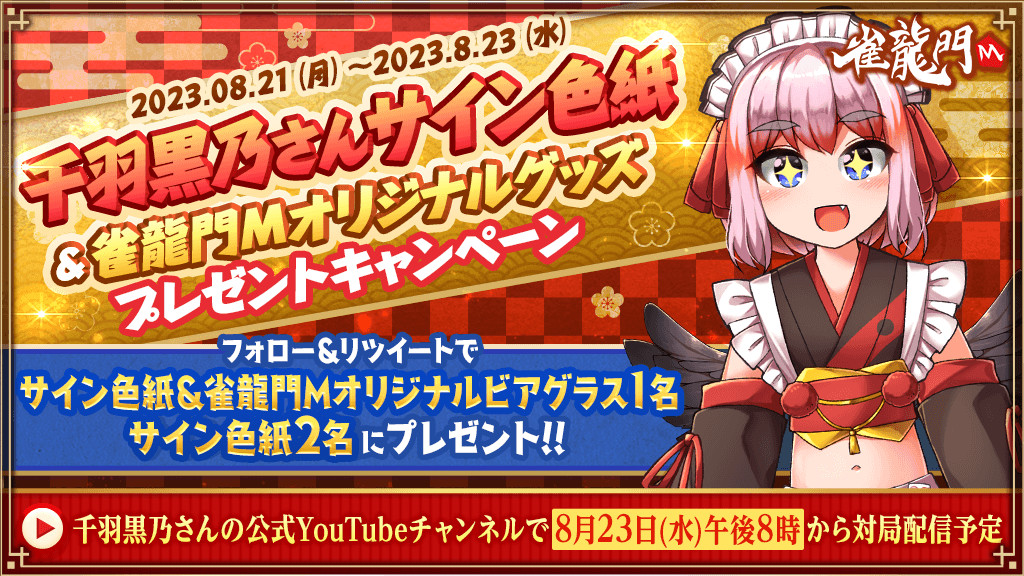 雀龍門Mの3周年を記念して8月は毎週新しいキャンペーンやイベント情報を続々公開予定!この機会にぜひ雀龍門M公式Twitterアカウントをフォローしてください。