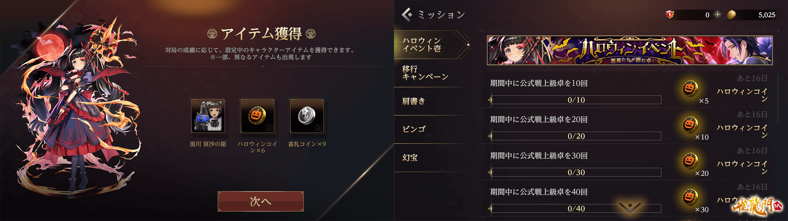 公式戦(上級卓)で獲得できる対局報酬のハロウィンのコインが増加し、より多くハロウィンのコインを獲得することができます!