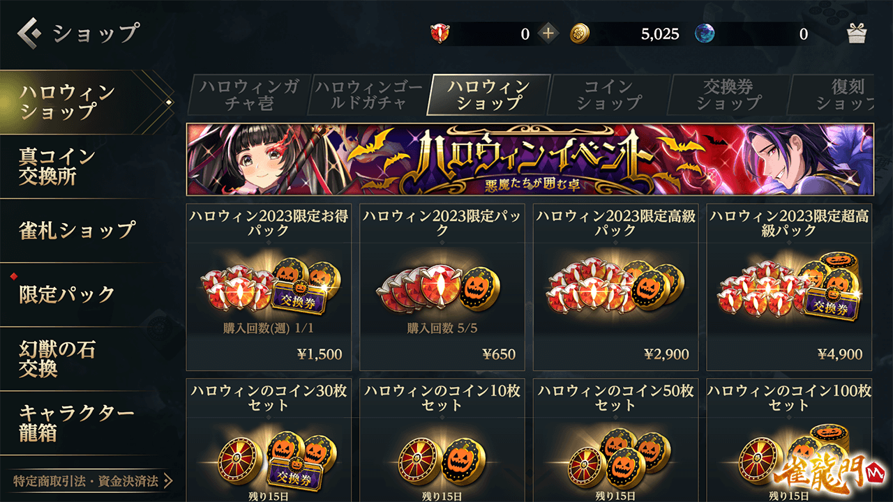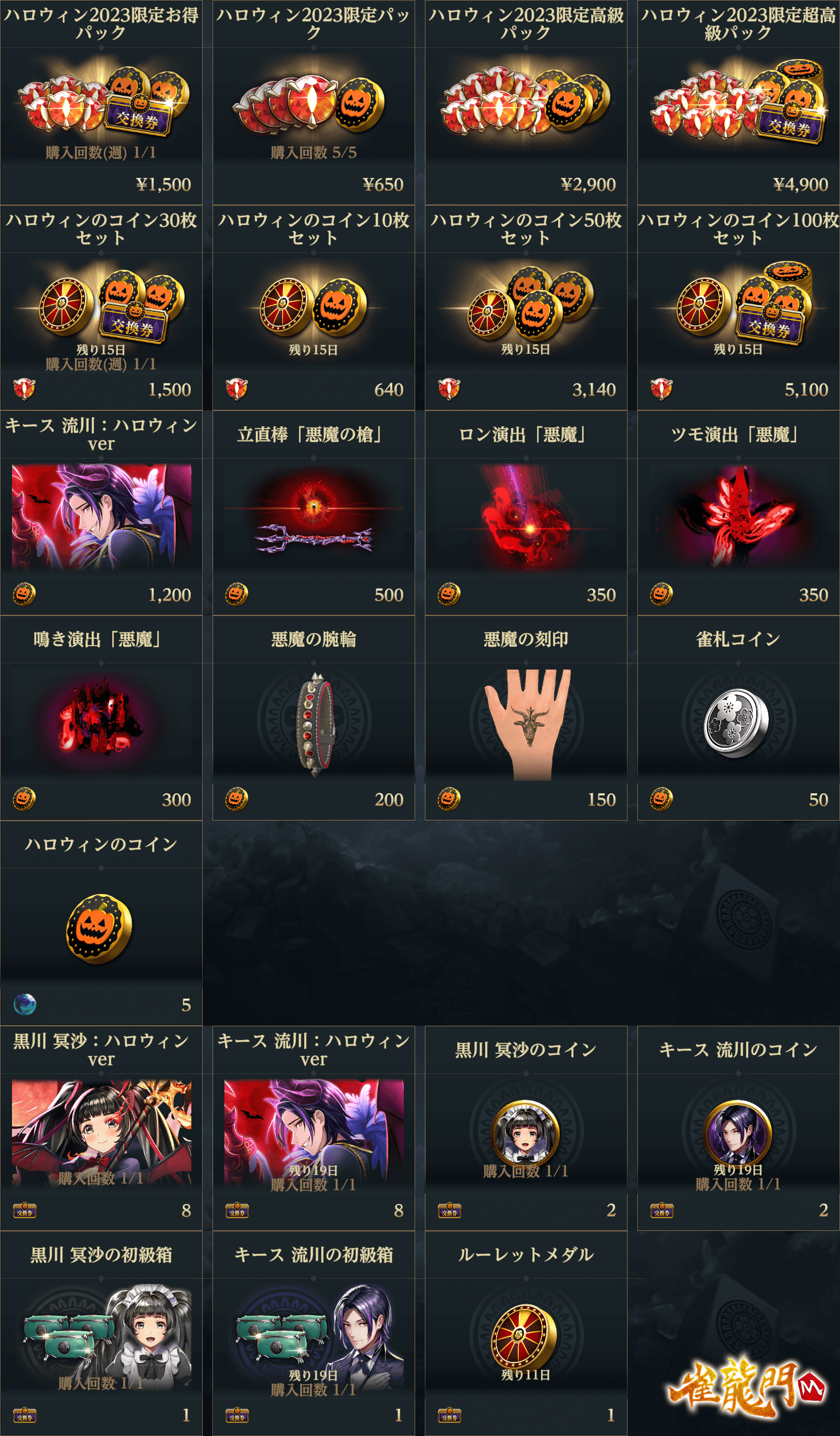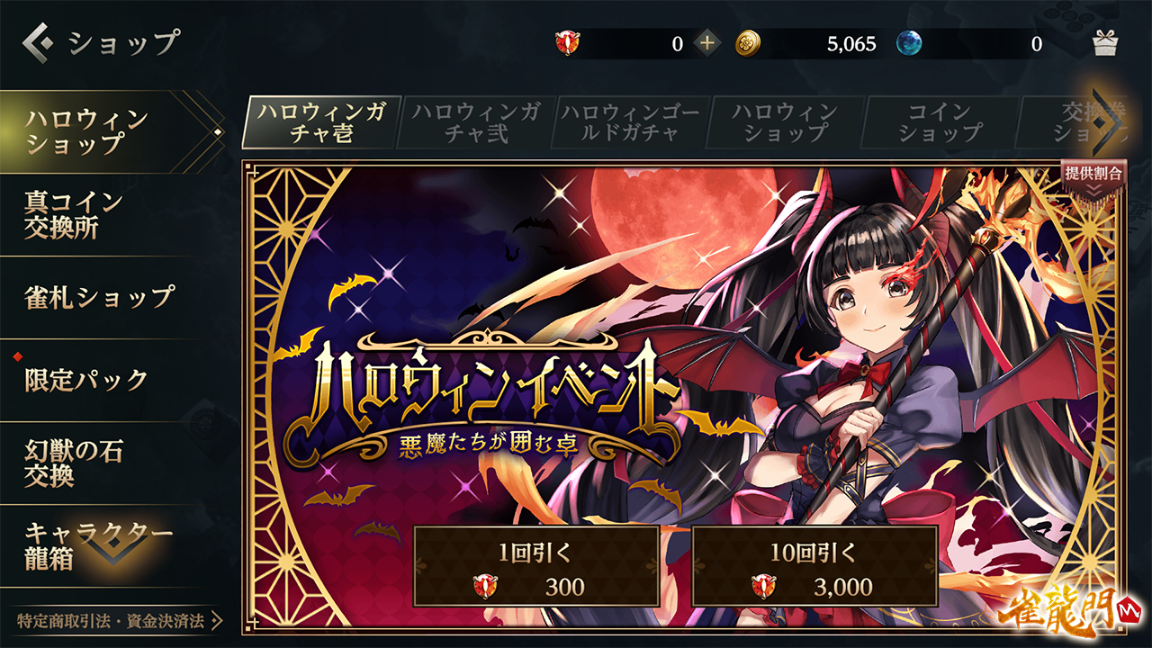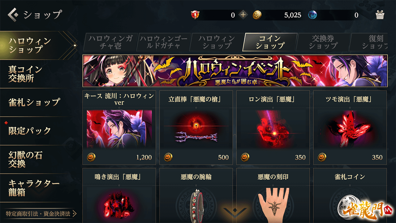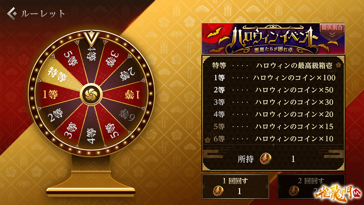 「ハロウィンのコイン」は公式戦(上級卓)の対局報酬、イベントミッション報酬、ルーレット、ハロウィンショップの商品などから入手が可能です!
