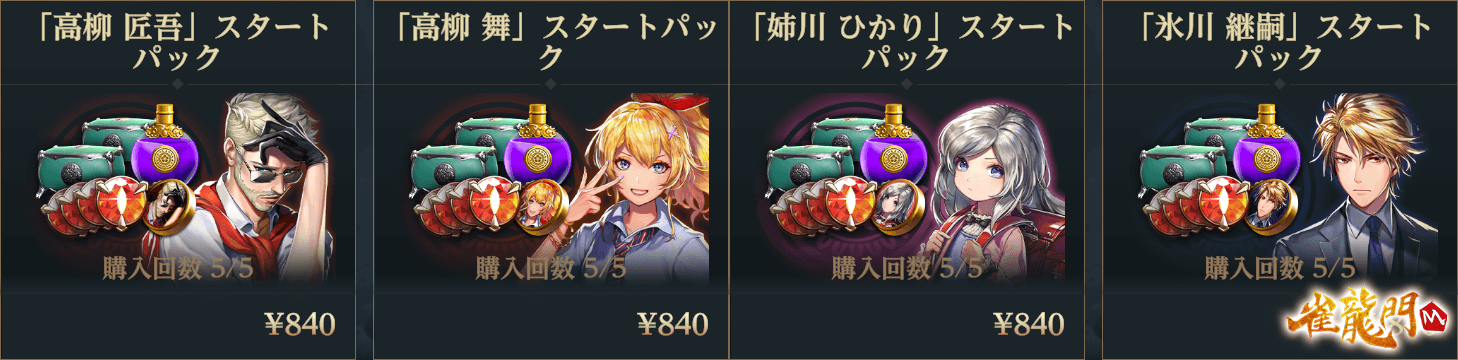 前半後半でそれぞれ2キャラクターのスタートパックを販売いたします。