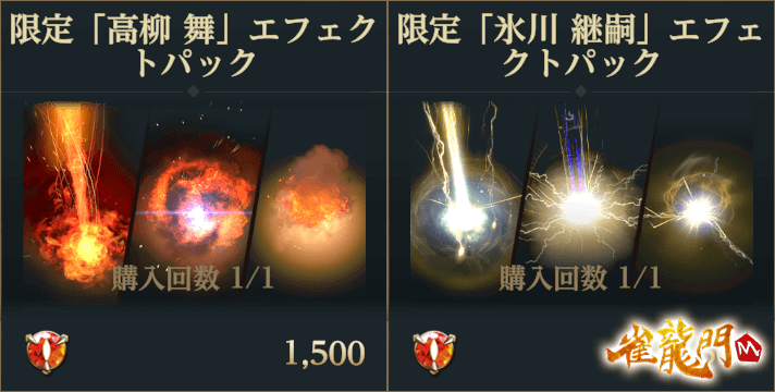 前半後半でそれぞれ1キャラクターのエフェクトパックを販売いたします。