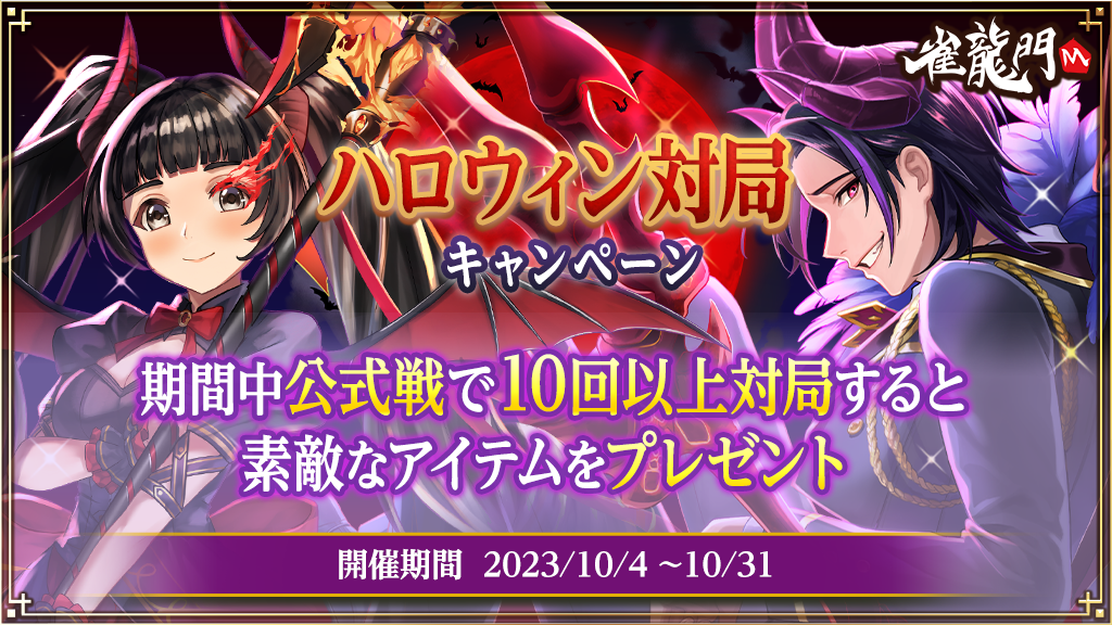 10月4日(水)より開始いたしました「ハロウィンイベント~悪魔たちが囲む卓〜」を皆様によりお楽しみいただくために、公式戦の対局キャンペーンを開催いたします。