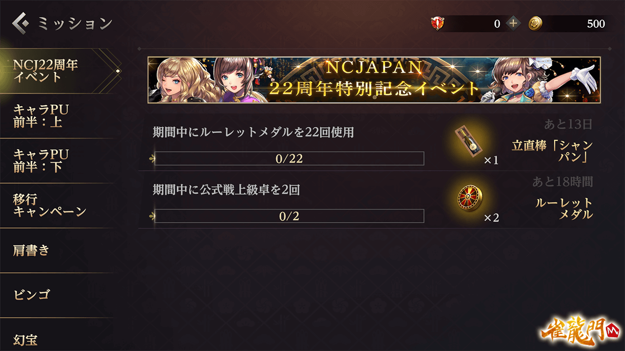 期間中、NCJAPAN22周年イベントミッションが開催されます!