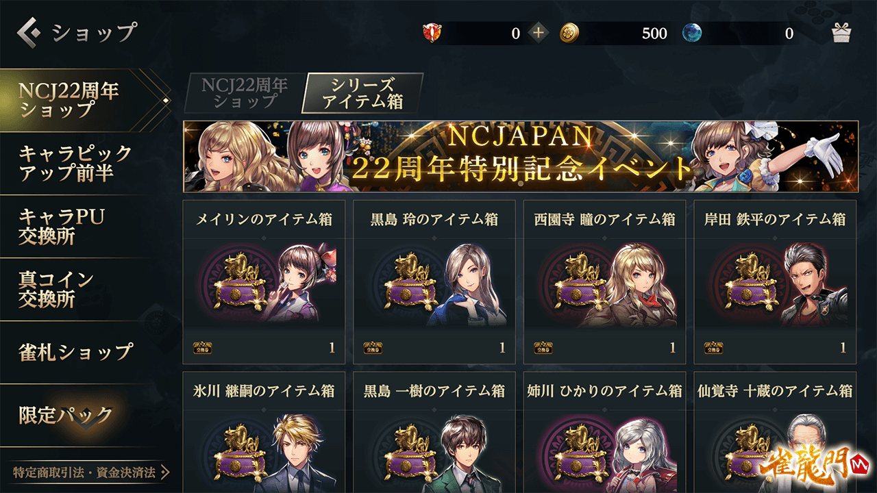 「シリーズアイテム箱交換券」は、ルーレットの特等や、雀龍門杯ランキング22位以上、NCJ22周年ショップから獲得できます。