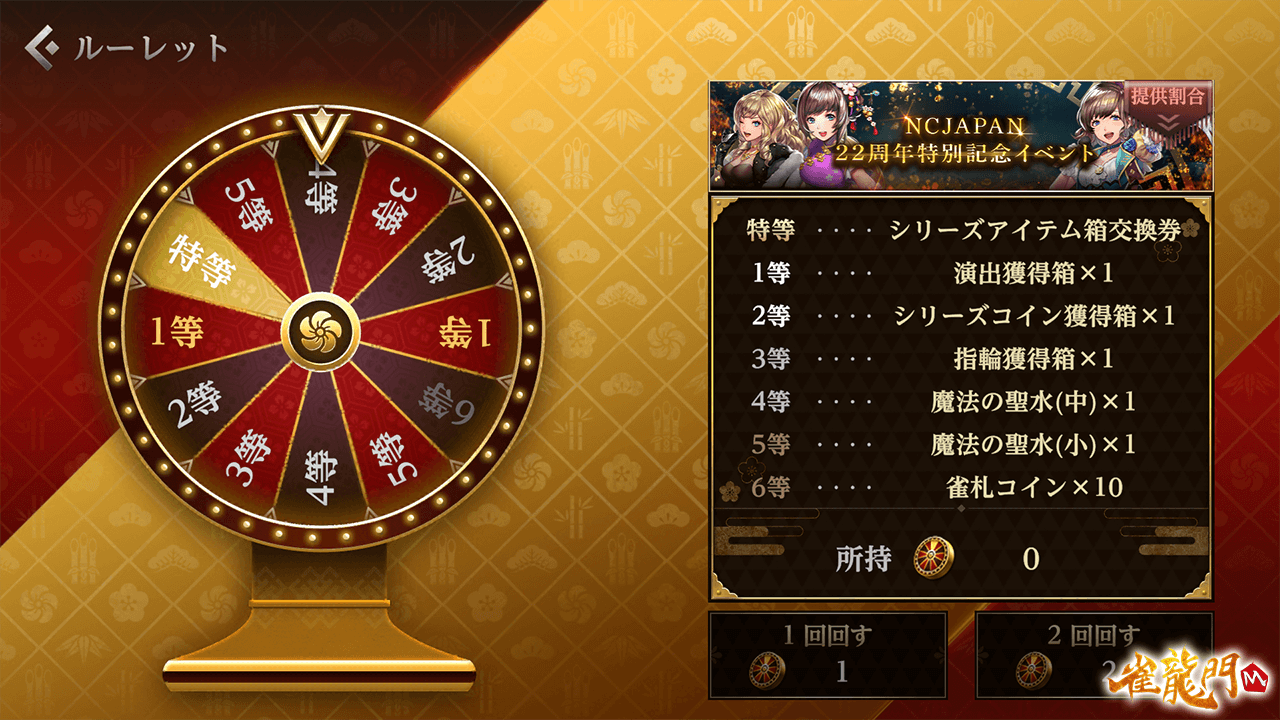 ※詳しくはゲーム内のルーレットページをご確認ください。