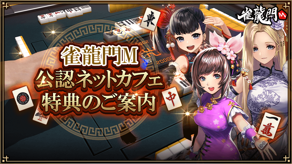 ※公認ネットカフェPCへの雀龍門M PCサービスのインストール作業はPC席が空いたタイミングで随時対応を行う都合上時間を要しますので、当面の間はご自身でゲームクライアントをダウンロードいただくことを前提にご来店をお願いいたします。