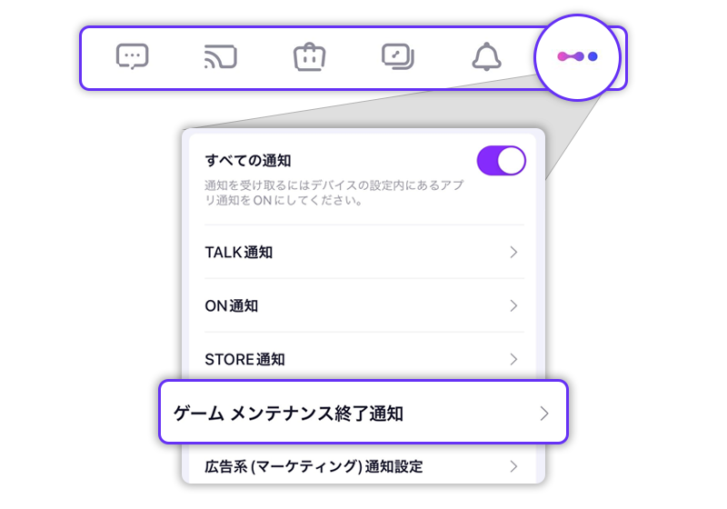 PURPLE Appの「ゲーム メンテナンス終了通知」機能の設定方法をご案内致します。