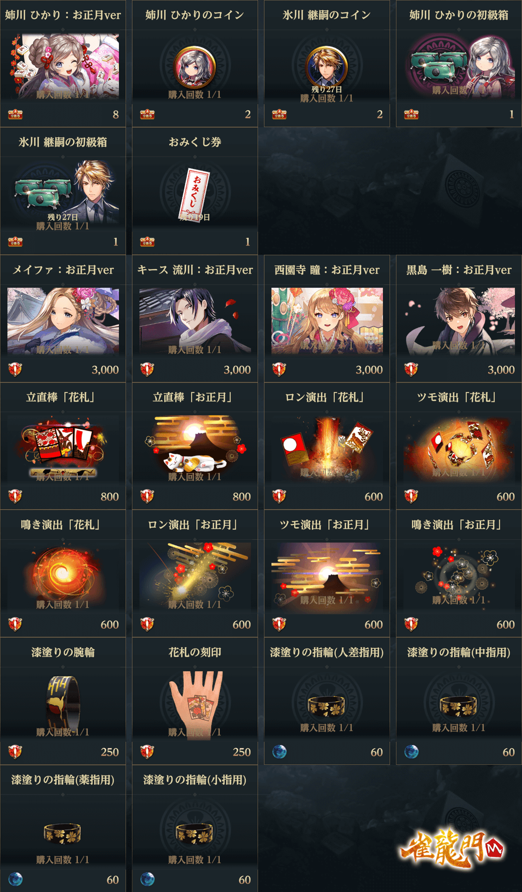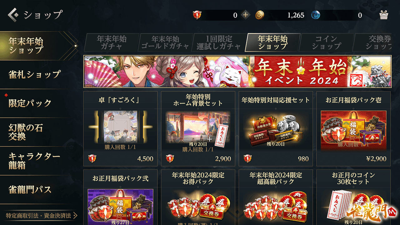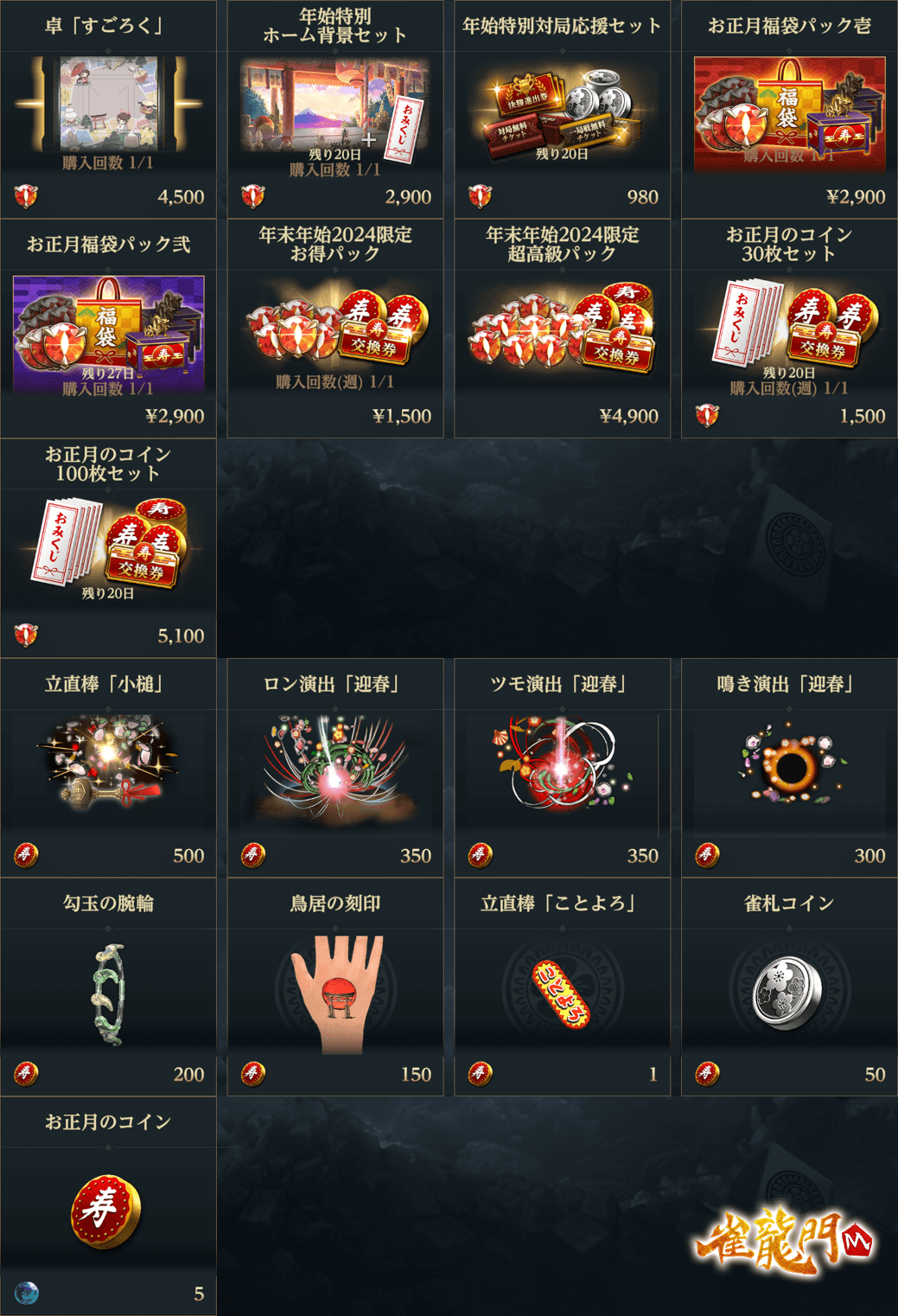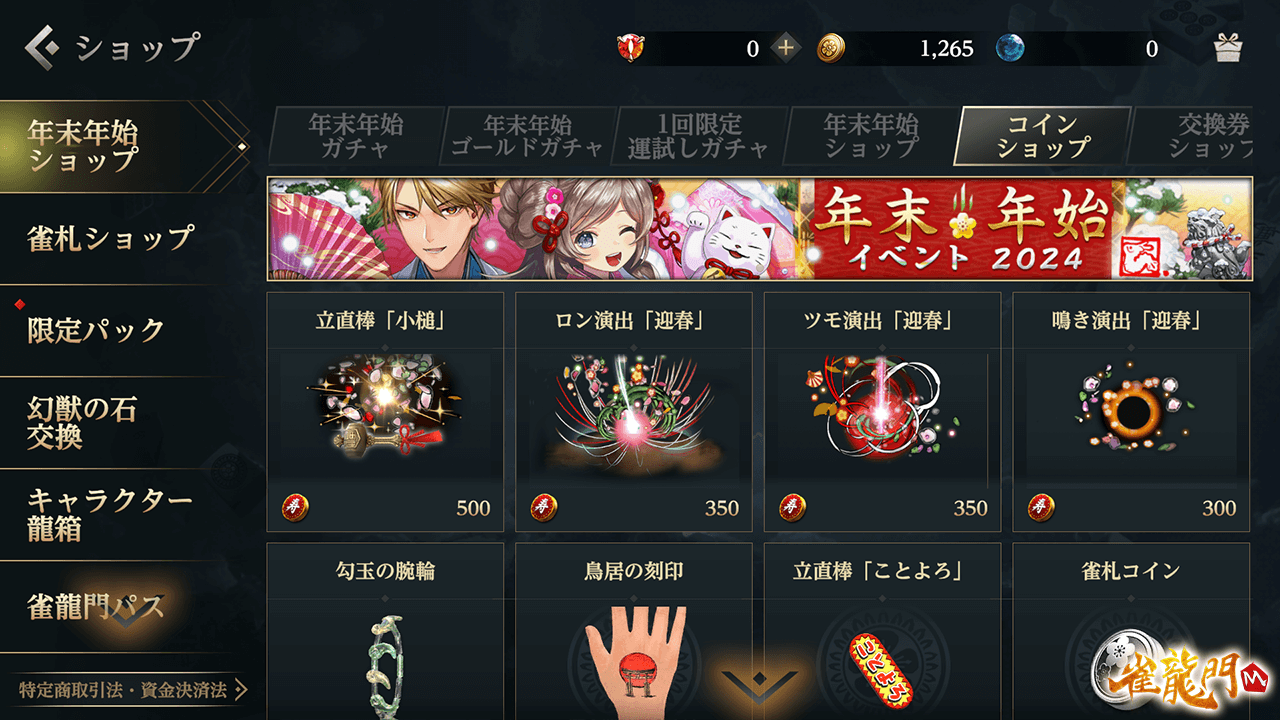 さらに昨年開催されたイベント「年末年始イベント2023」や、一昨年開催された「雀龍門M年末年始イベント」のアイテムを購入できる復刻ショップが登場!!