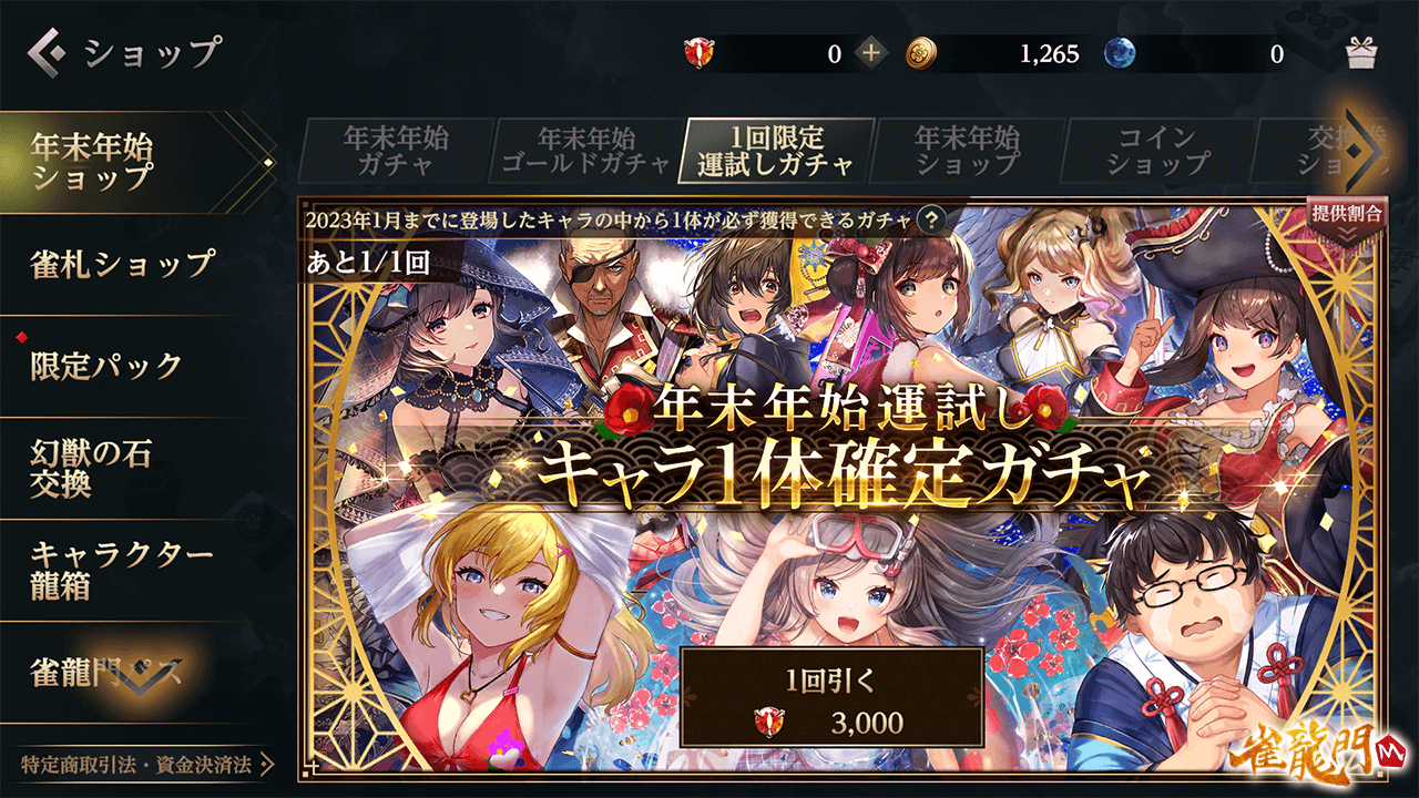 さらに、1回限定の「年末年始運試し キャラ1体確定ガチャ」が登場!