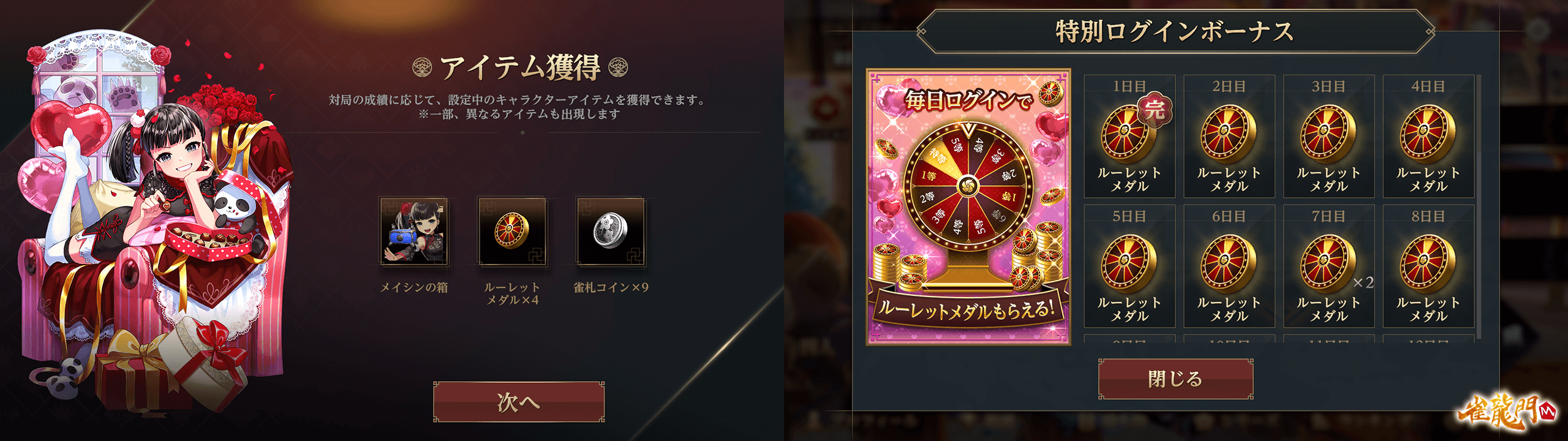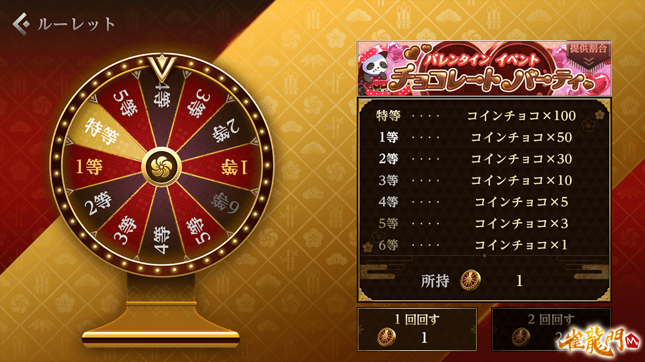 ルーレットを回すのに必要な「ルーレットメダル」は公式戦(上級卓)の対局報酬、ログインボーナスから入手が可能です!