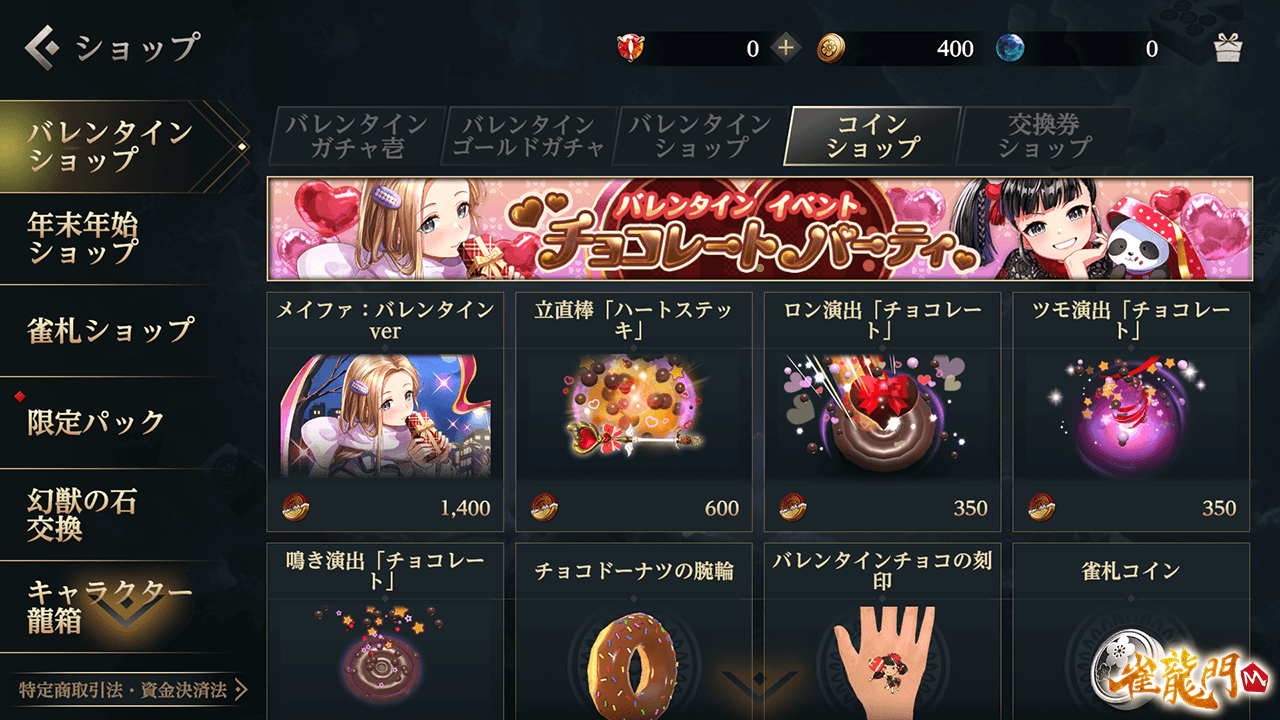 龍宝をお得に購入できる特別なパック商品や、「バレンタインイベント チョコレートパーティ」イベント限定アイテムが出現するバレンタインガチャが登場!