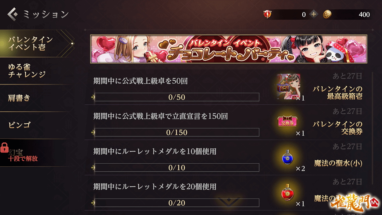 イベントミッションを達成すると「バレンタインの最高級箱」などのアイテムを獲得できます。