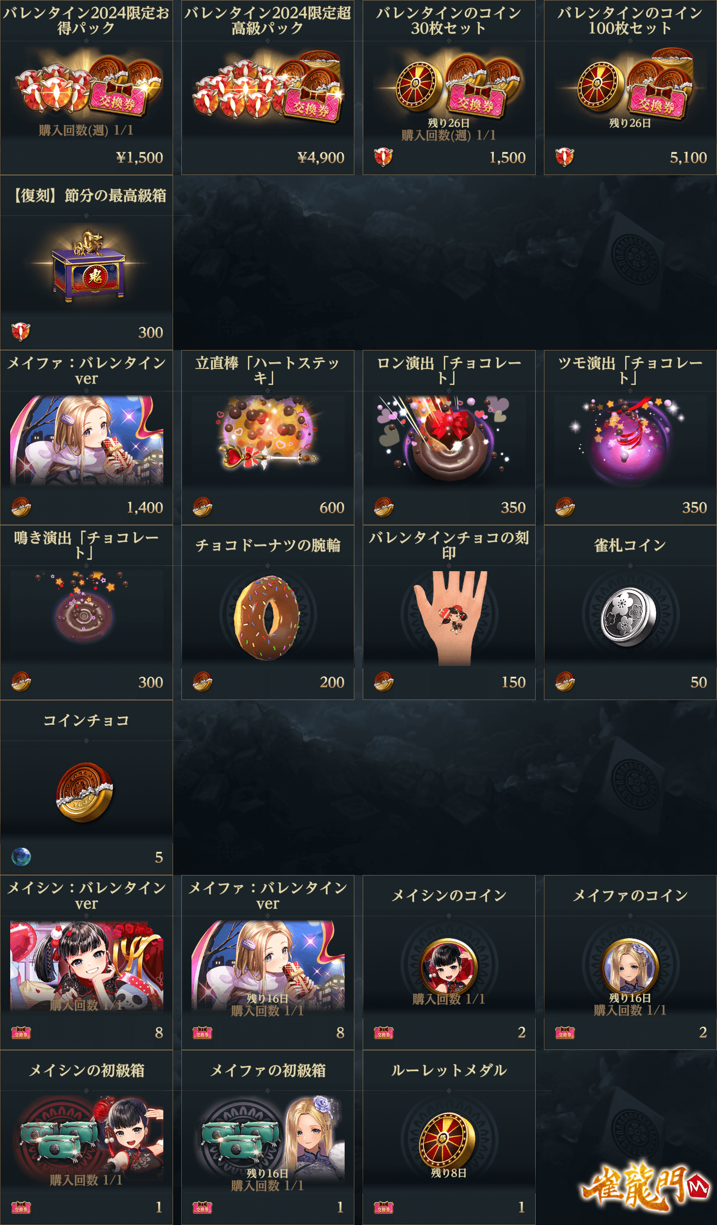 「バレンタインの最高級箱壱」からは「メイシン:バレンタインver」が獲得できるチャンスです!