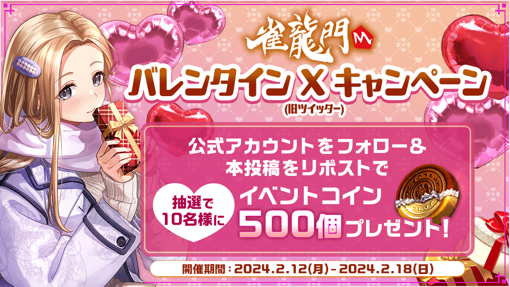キャンペーンに参加して、バレンタインを楽しもう!「雀龍門M バレンタインXキャンペーン」を開催します!