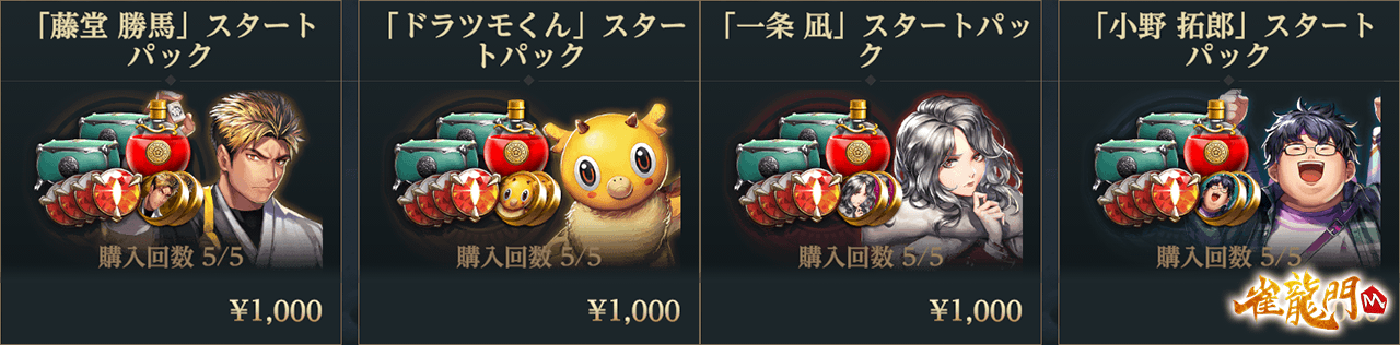 前半後半でそれぞれ2キャラクターのスタートパックを販売いたします。