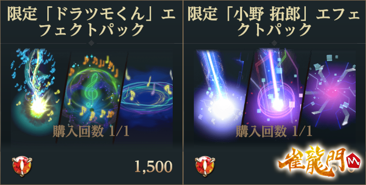 前半後半でそれぞれ1キャラクターのエフェクトパックを販売いたします。