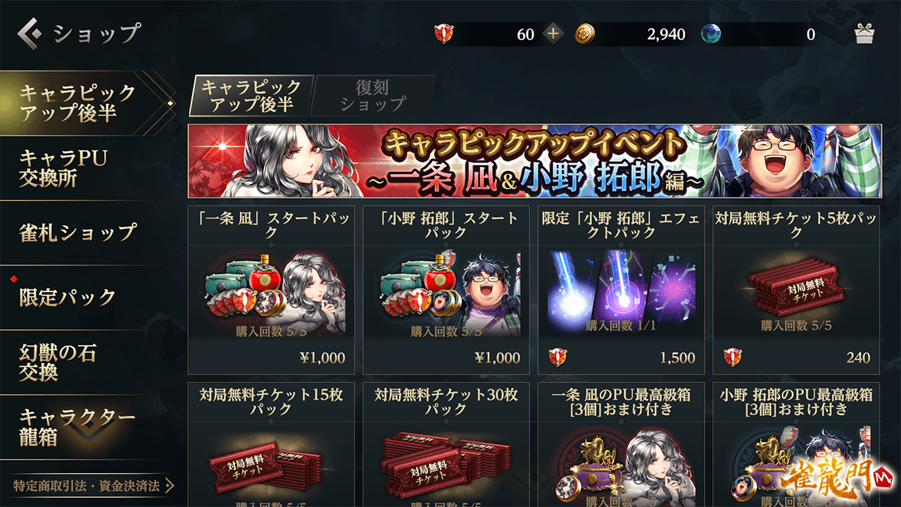 スタートパックは他にも今回ピックアップされたキャラの対局中に喋るボイスや、対局中に使用できるスタンプを集めたいという方におすすめの商品となっております。