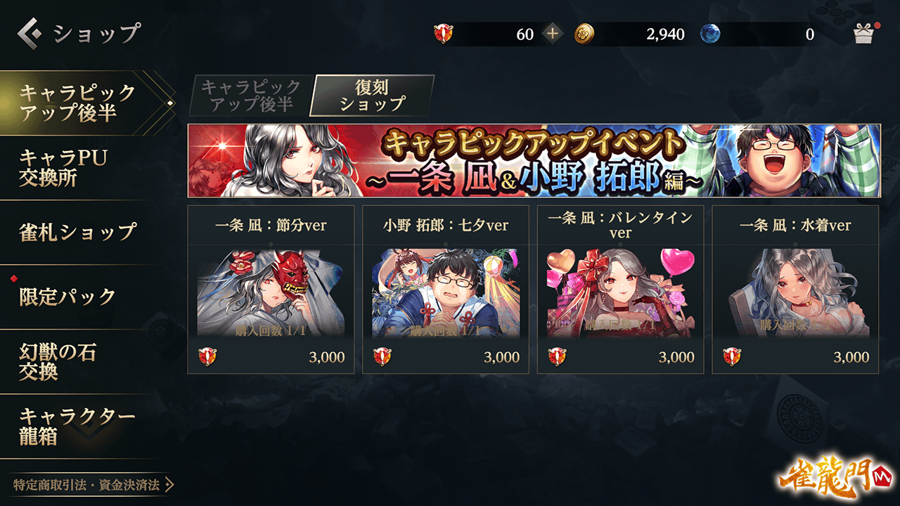 復刻ショップでイベントverのキャラを手に入れるチャンス!