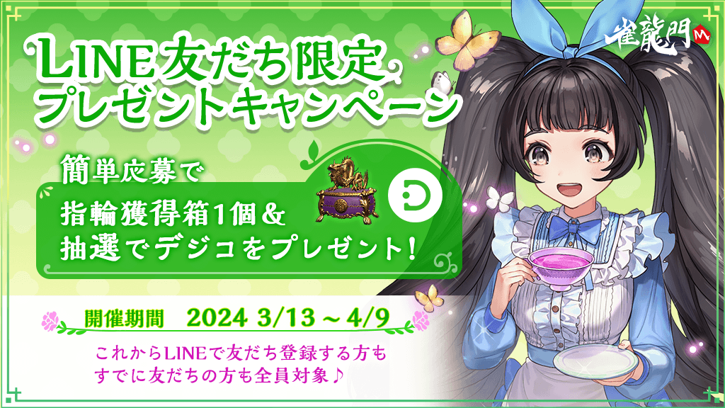 『雀龍門M』LINE公式アカウントの友だちの方、これから友だちになっていただける方に向けて、「LINE友だち限定プレゼントキャンペーン」を開催します。