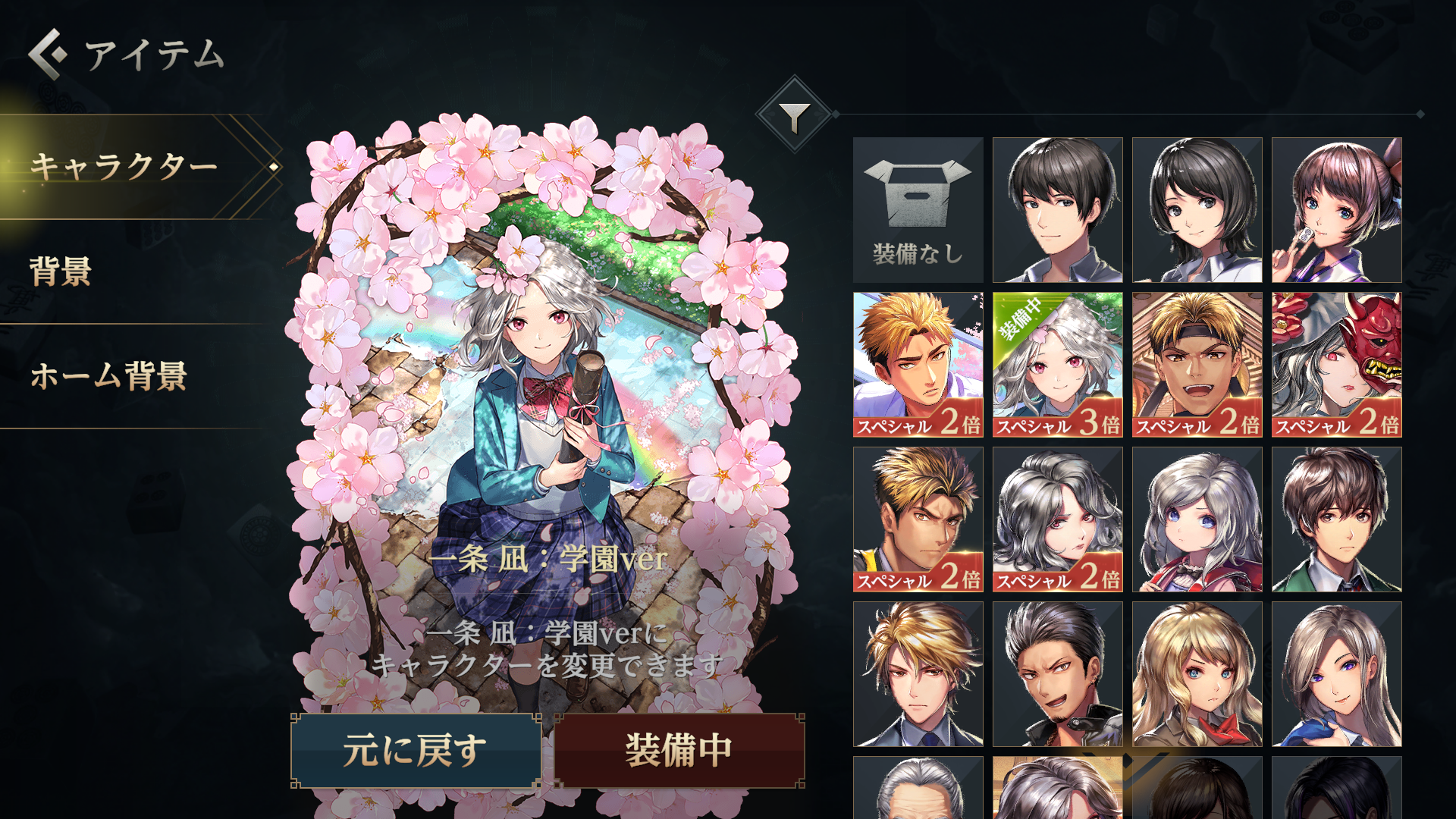 対象のキャラは、イベントのお知らせや、「持ち物」画面>「キャラクター/背景」でご確認いただけます。