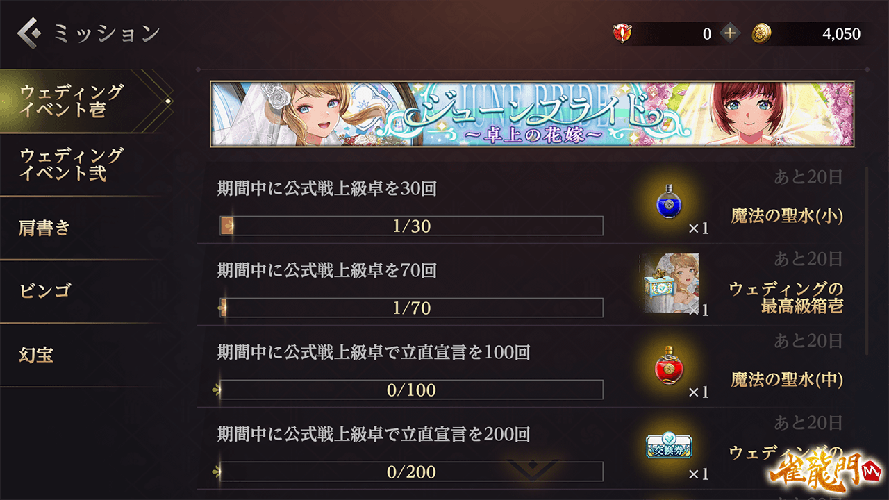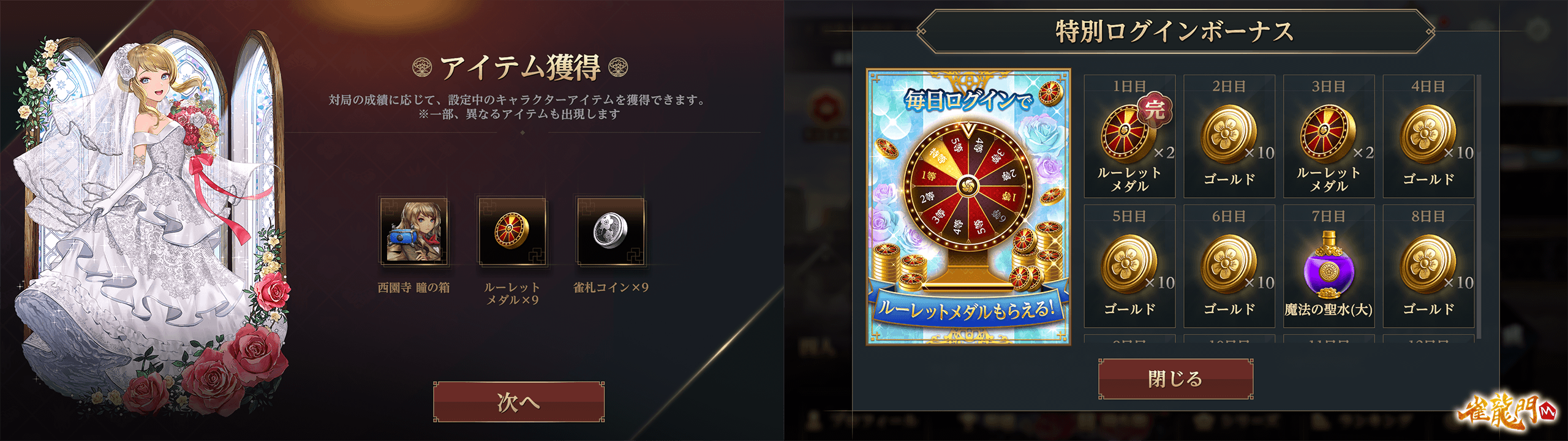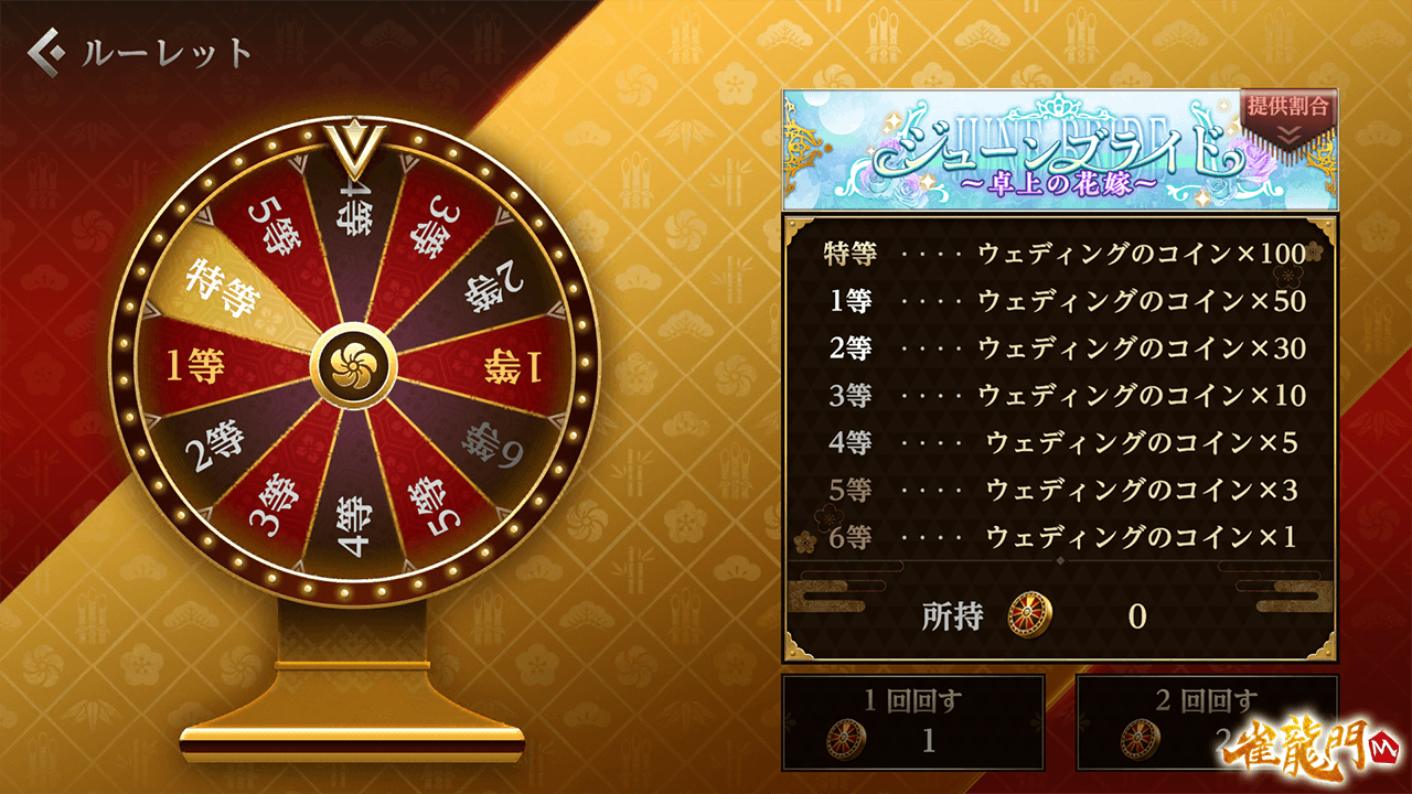 公式戦(上級卓)で獲得できる対局報酬のルーレットメダルが増加し、「ウェディングのコイン」を獲得する効率が大幅にアップ!