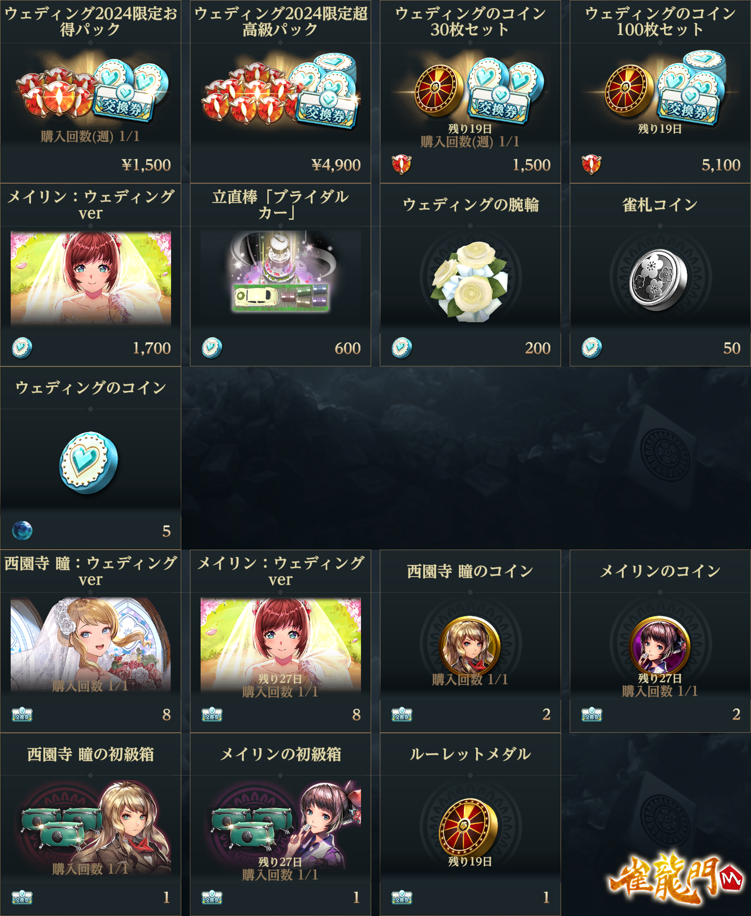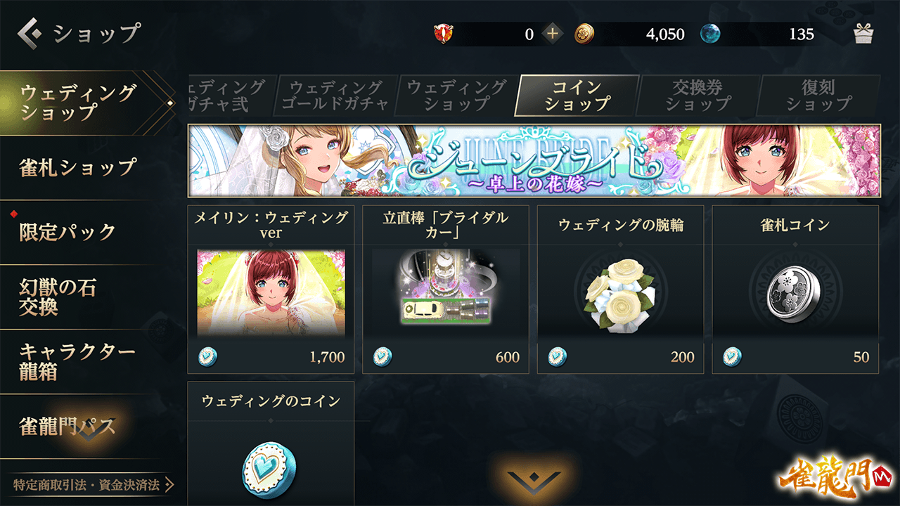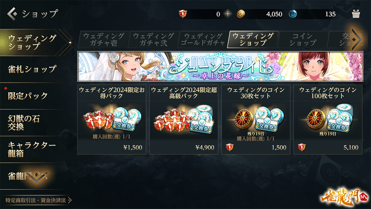 龍宝をお得に購入できる特別なパック商品や、「雀龍門学園物語~青春回想編~」イベント限定アイテムが出現するウェディングガチャが登場!